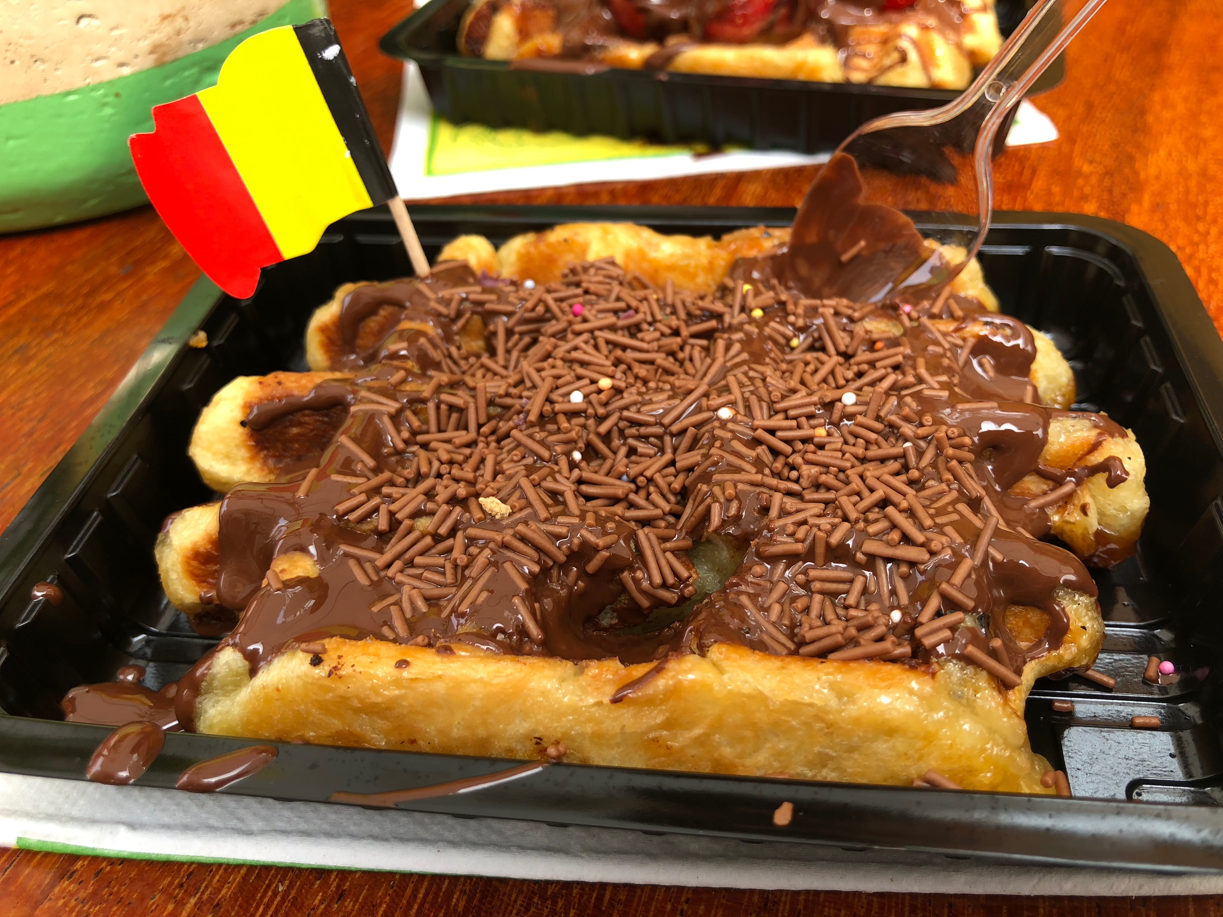 Paramos para almoçar na Pizzeria Ristorante La Torre (€30 casal) bem em frente a catedral que tínhamos passado. De sobremesa paramos em uma barraquinha e pedimos um Waffle Belga com chocolate – bom demais! Amo muito hehe.