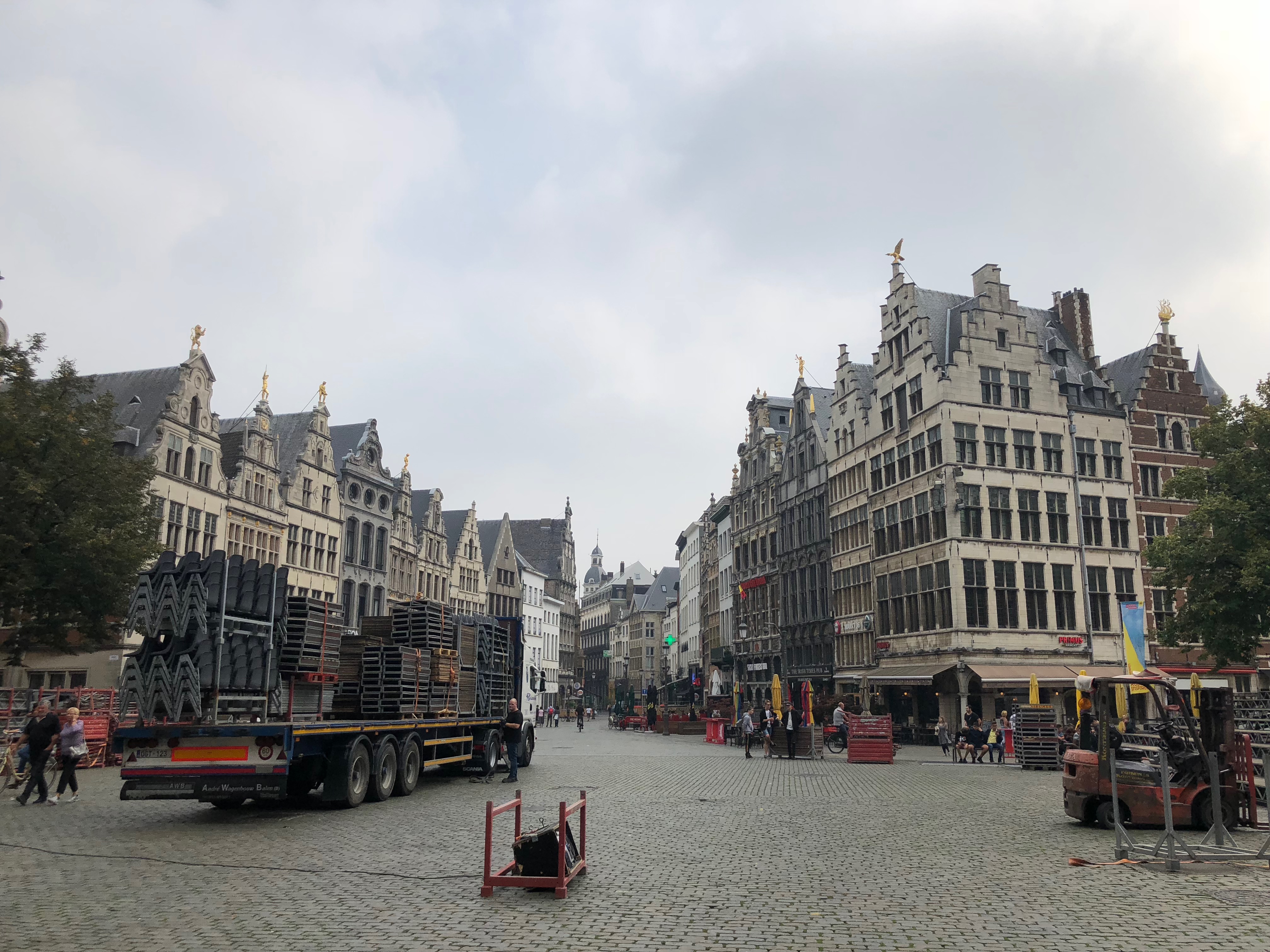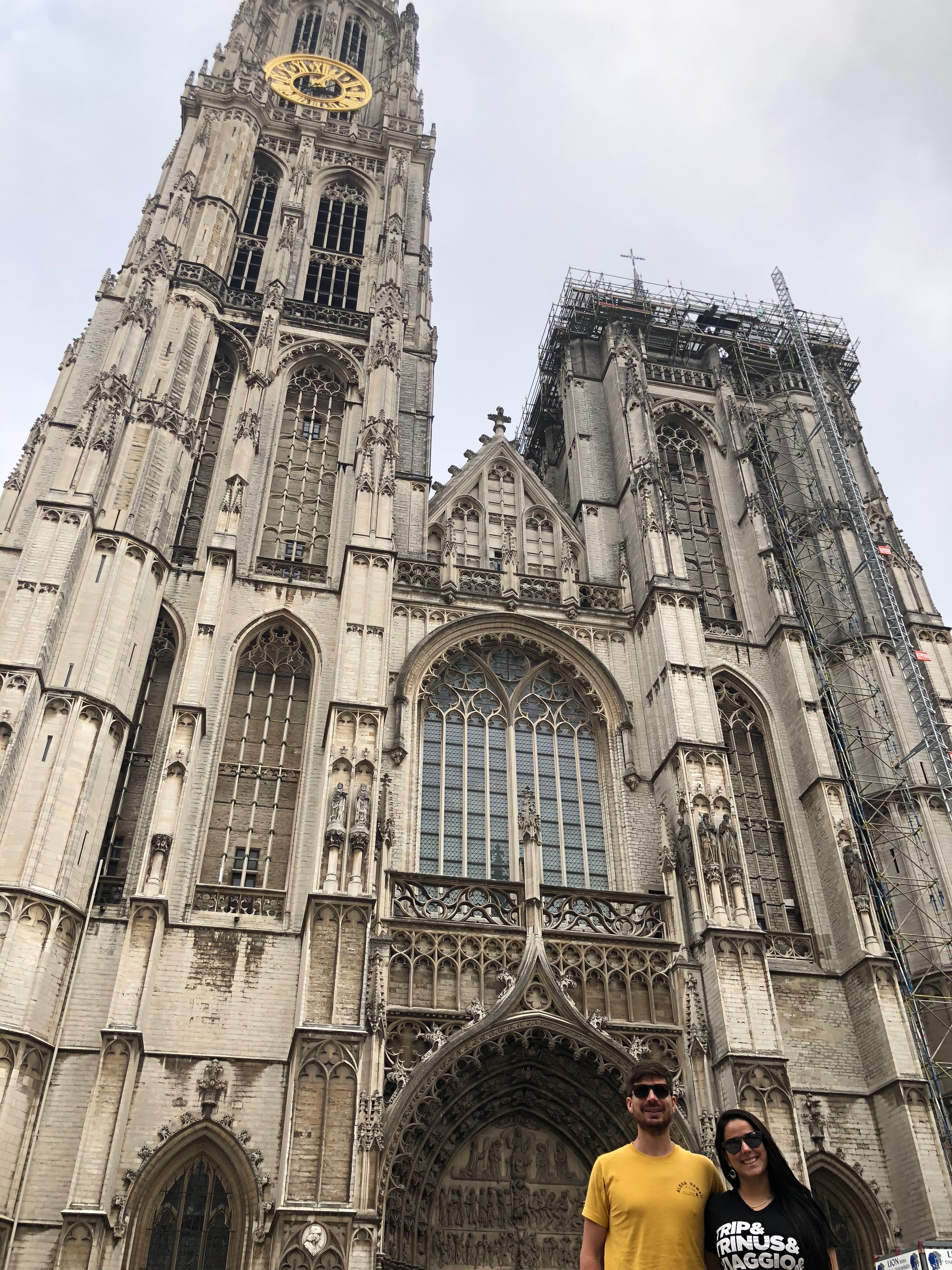 Caminhamos até a Cathedral of Our Lady mas não entramos porque era pago. Seguimos para o Grote Markt mas infelizmente ele estava praticamente todo em reforma e algo estava sendo montado para show no meio da praça. Mesmo assim deu para ver a beleza do lugar.
