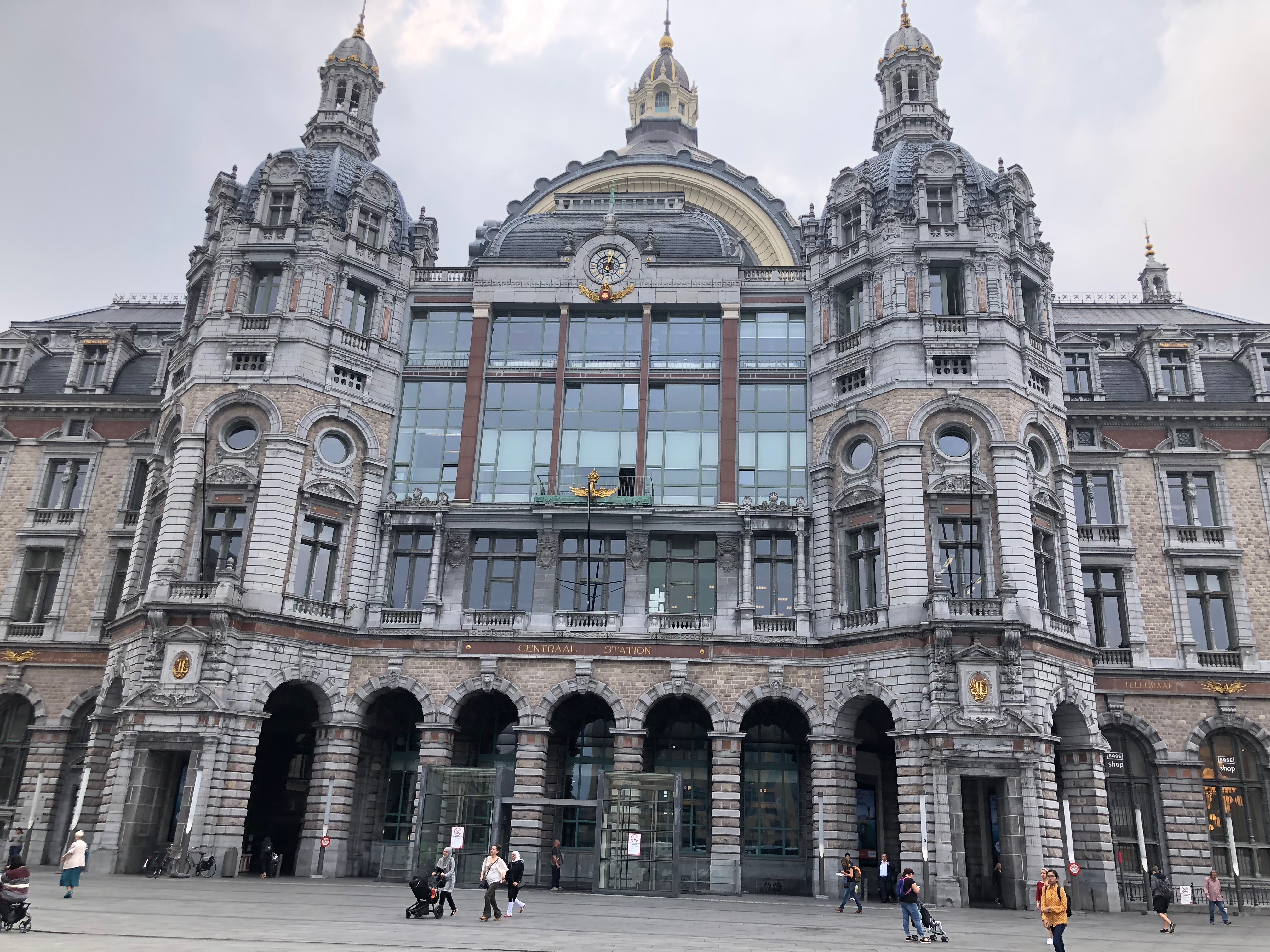 Foram 3 horas de ônibus de Düsseldorf para Antwerpen e chegamos por volta do meio dia. Como o nosso check in na Ambassador Suites Antwerp (€94 o casal pra 2 noites) era só as 4pm, deixamos as malas num locker na estação central (€5 para os dois mochilões por 24 horas) e fomos conhecer a cidade.