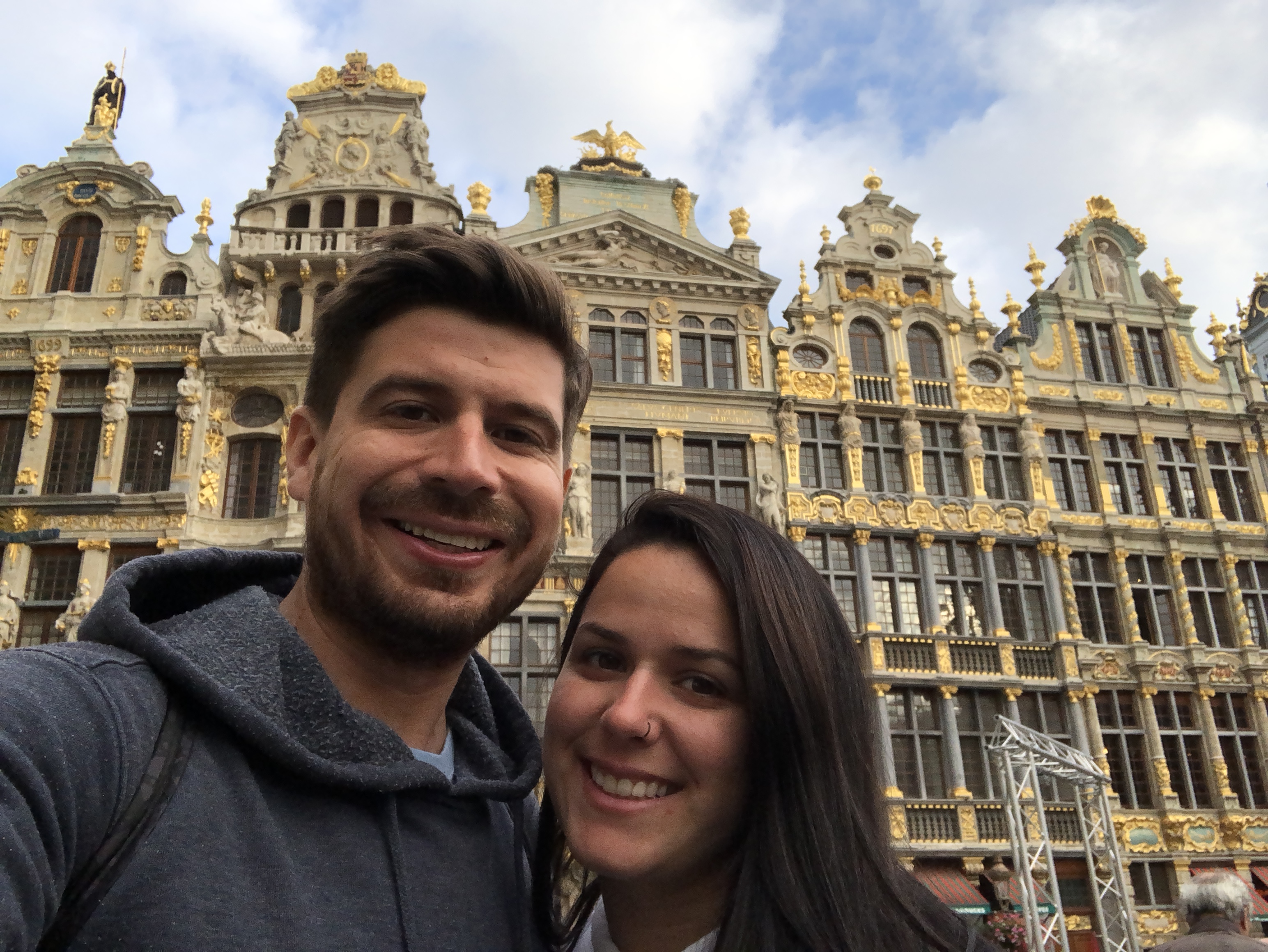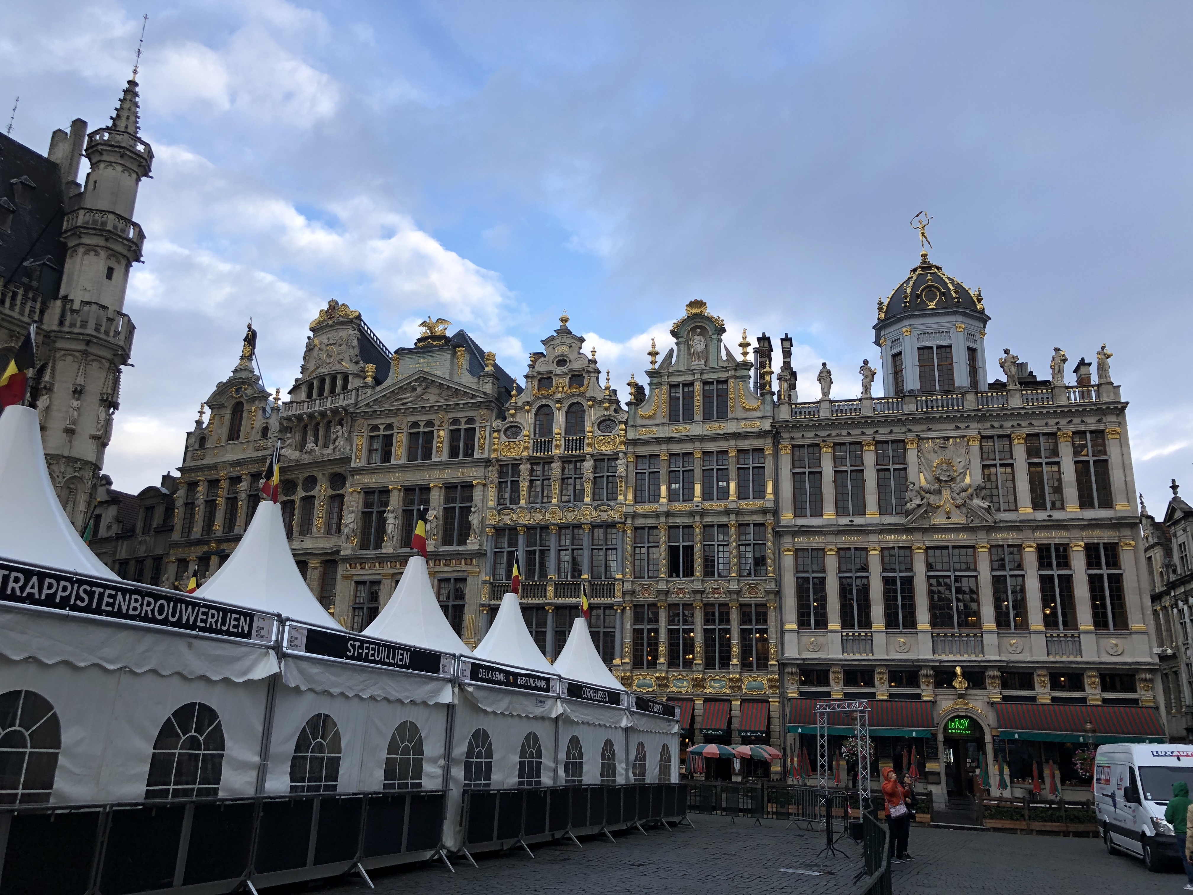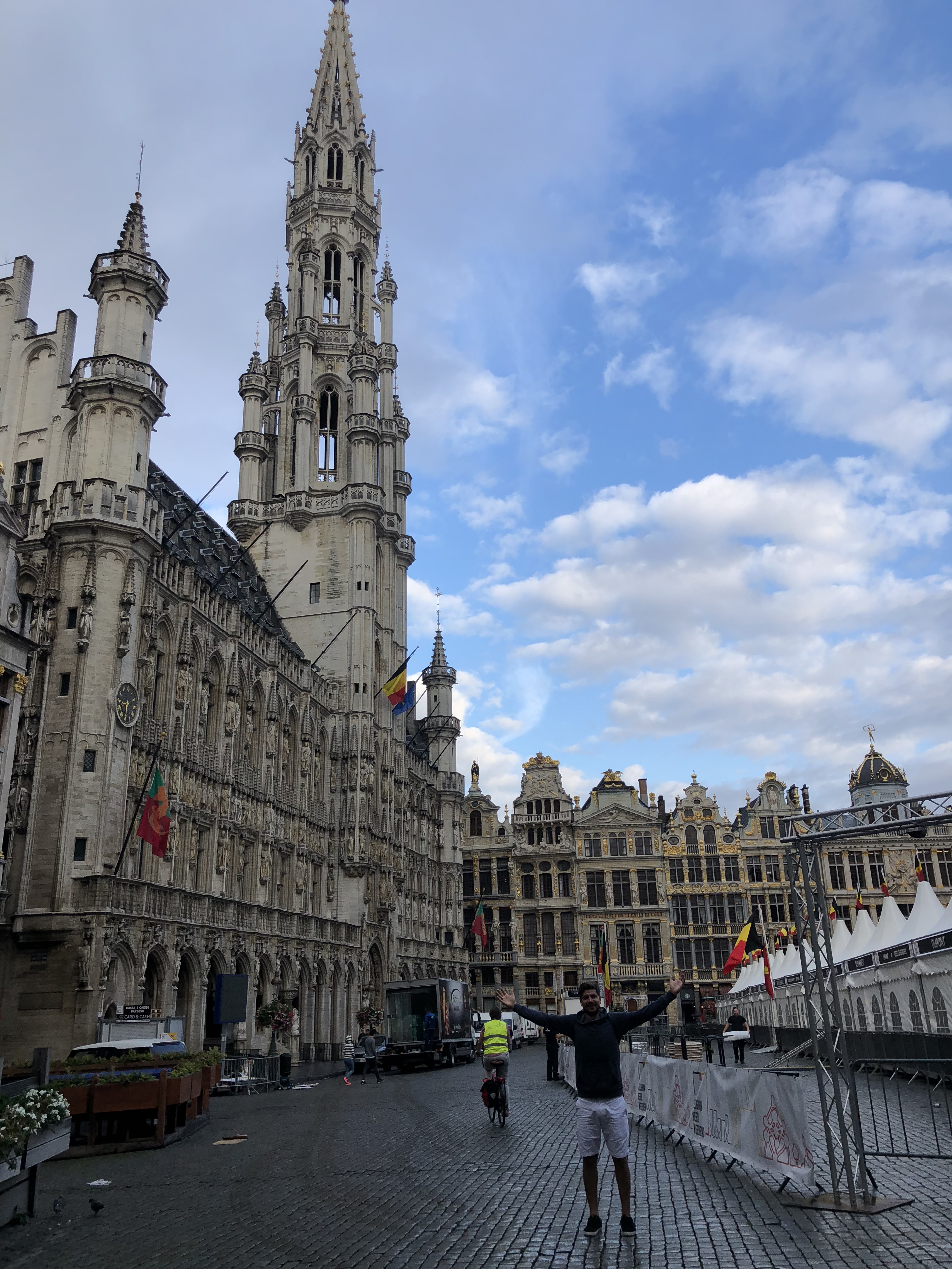 Passamos pelo Grand Place, uma praça linda de viver, com as casinhas típicas de madeira, cheio de ouro e detalhes com alguns prédios bem importantes como a casa do Rei. Estava com umas tendas porque ia rolar um festival de cerveja.