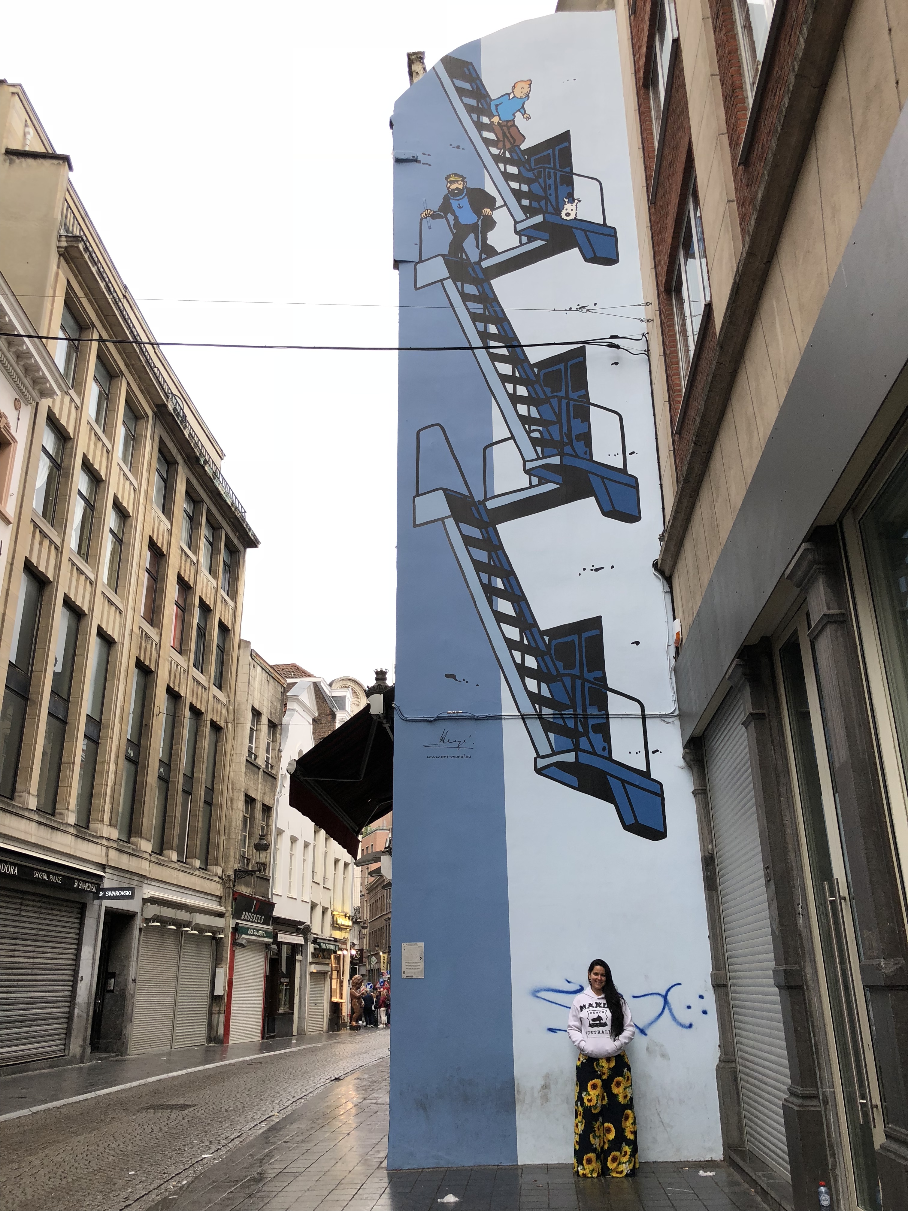 Fomos até o Manneken Pis – a estátua é super pequena para quem não sabe rs – e no caminho vimos essa arte do Rim Tim Tim, normal, afinal de contas ele é um desenho belga.