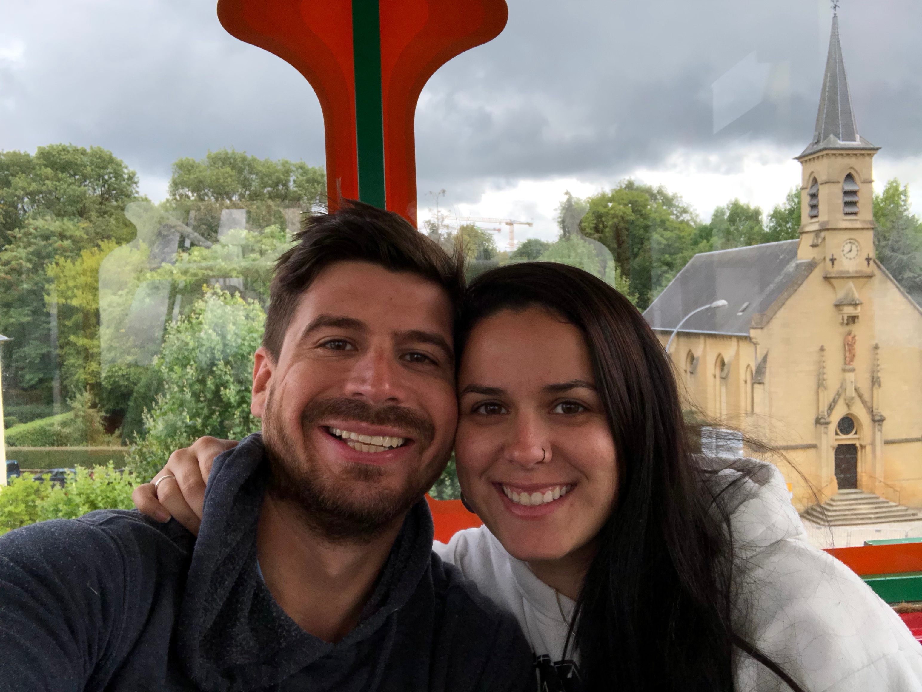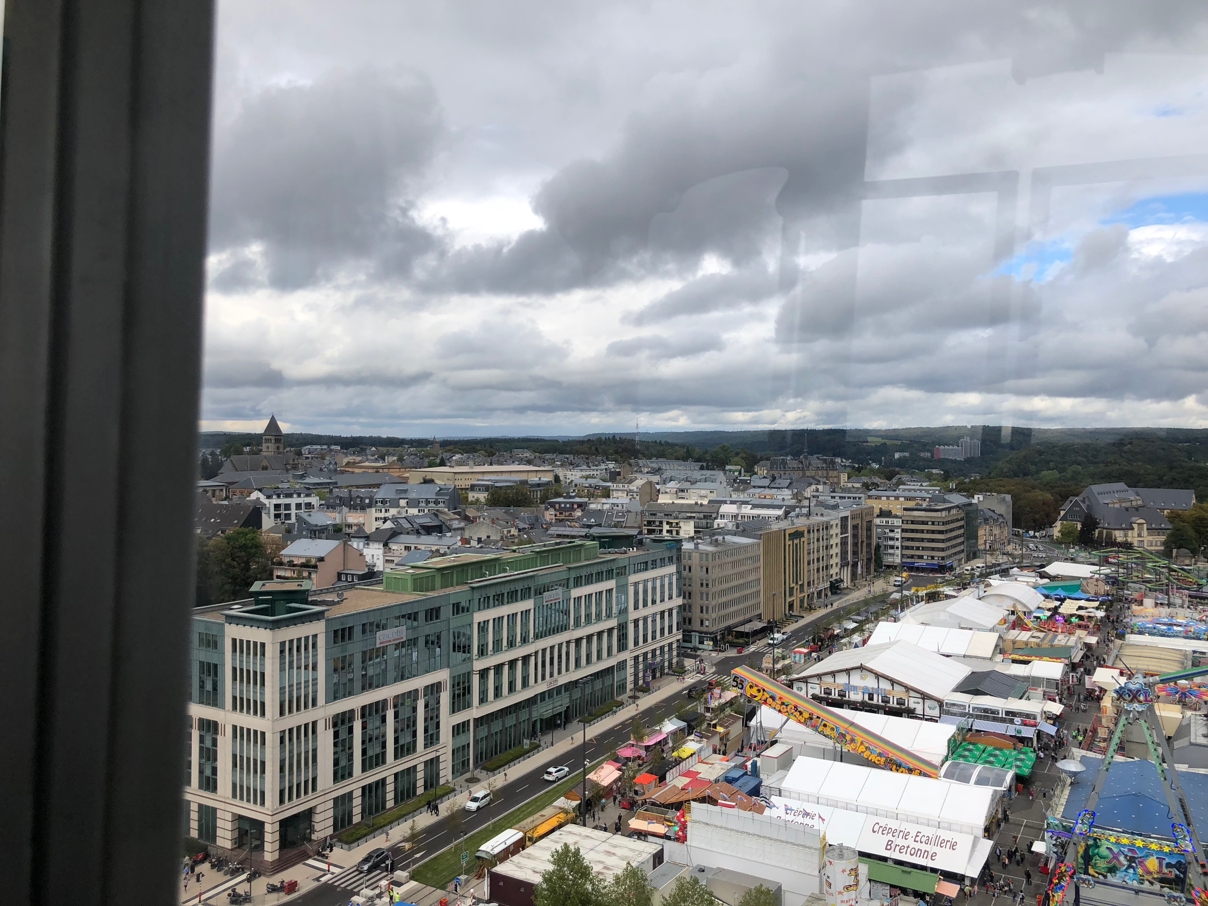 Pegamos o ônibus (Eurolines) em Bruxelas e 4 horas depois chegamos em Luxemburgo. Paramos bem em frente a um evento que estava tendo na cidade com parque de diversões, diversas barraquinhas de comida e bebida, música e etc.