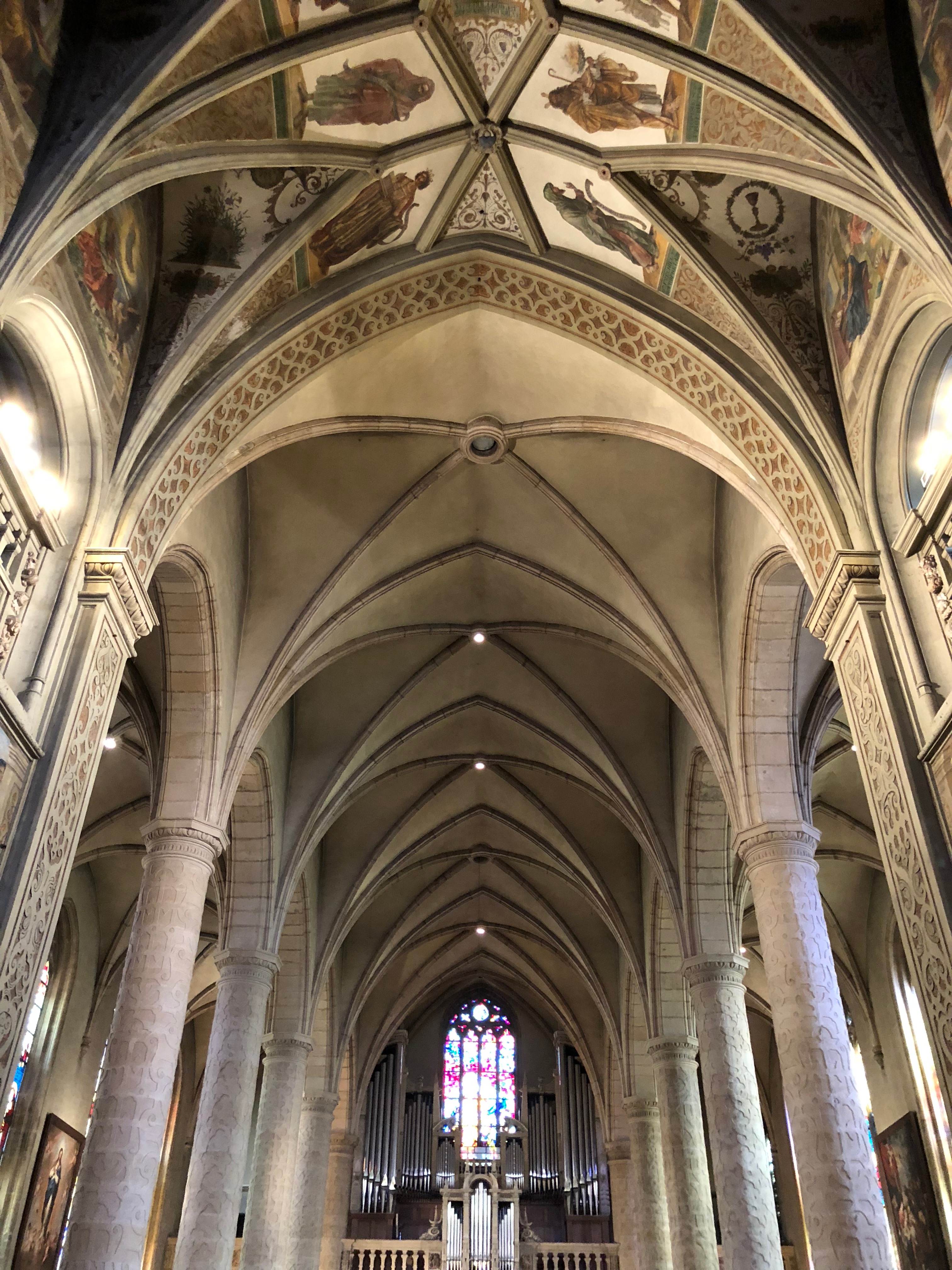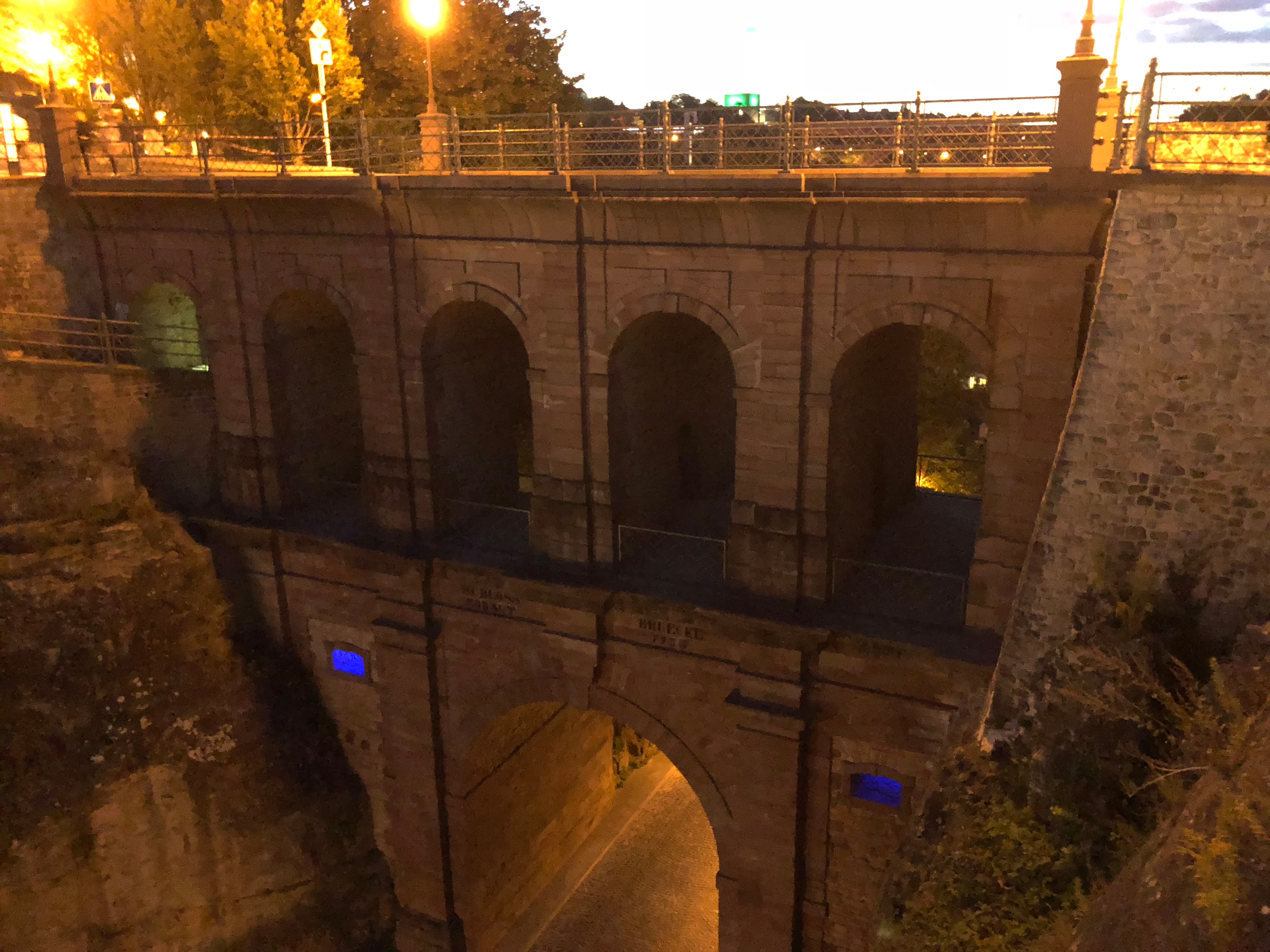 Caminhamos pela Adolphe Bridge até a Catedral de Notre Dame, aonde entramos para admirar a beleza do lugar. Gostei. Do lado de fora tem uma vista bem legal para a ponte e tem também uma bandeira enorme de Luxemburgo.