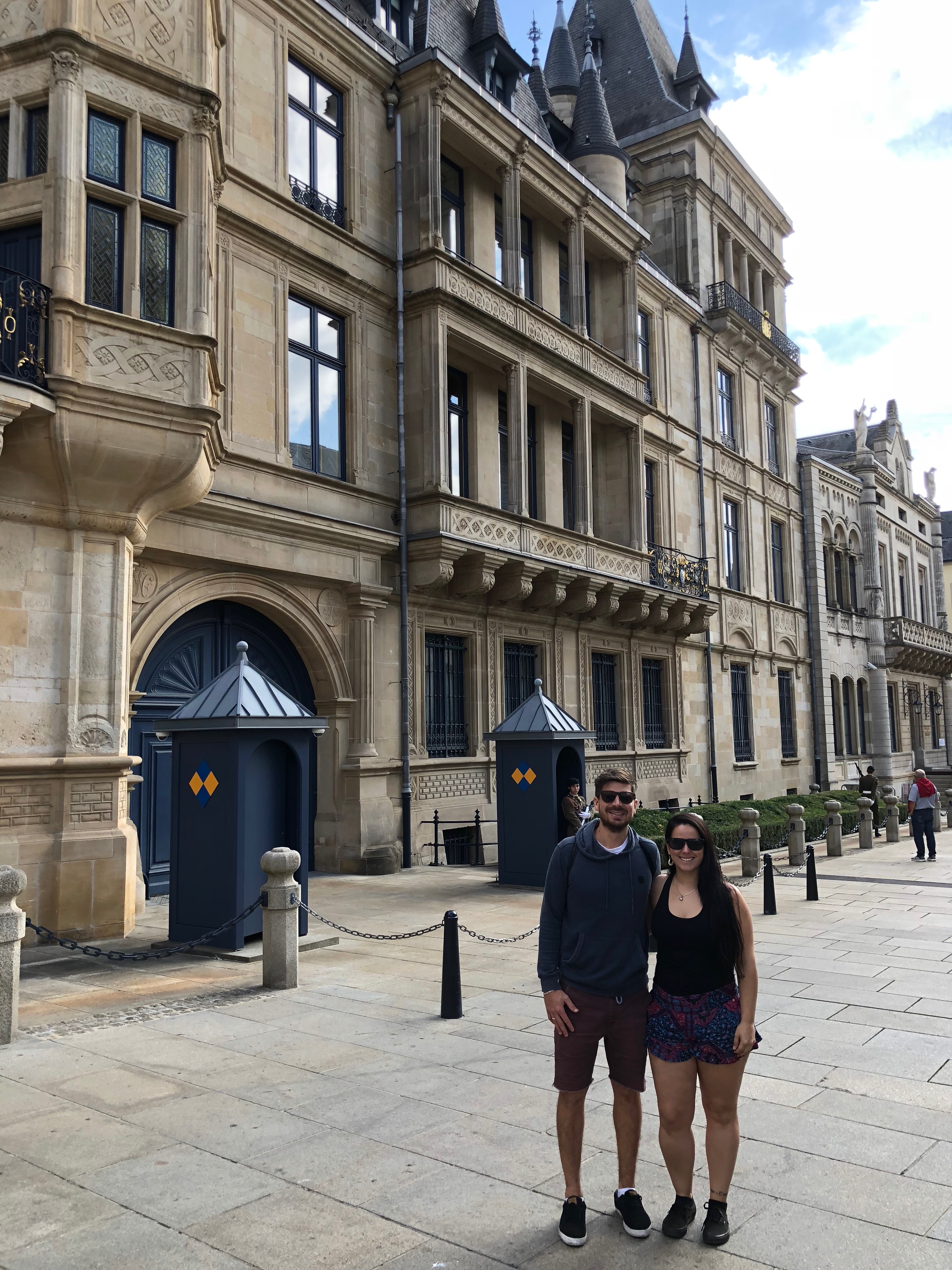 Fomos então até o Palais Grand Ducal e vimos os – e as – guardinhas, gosto dessa coisa Real viu?! O palácio fica numa rua meio apertada então não dava para fotografar ele inteiro. Aproveitamos uma lojinha de lembrancinhas ali e compramos algumas coisinhas para levar.