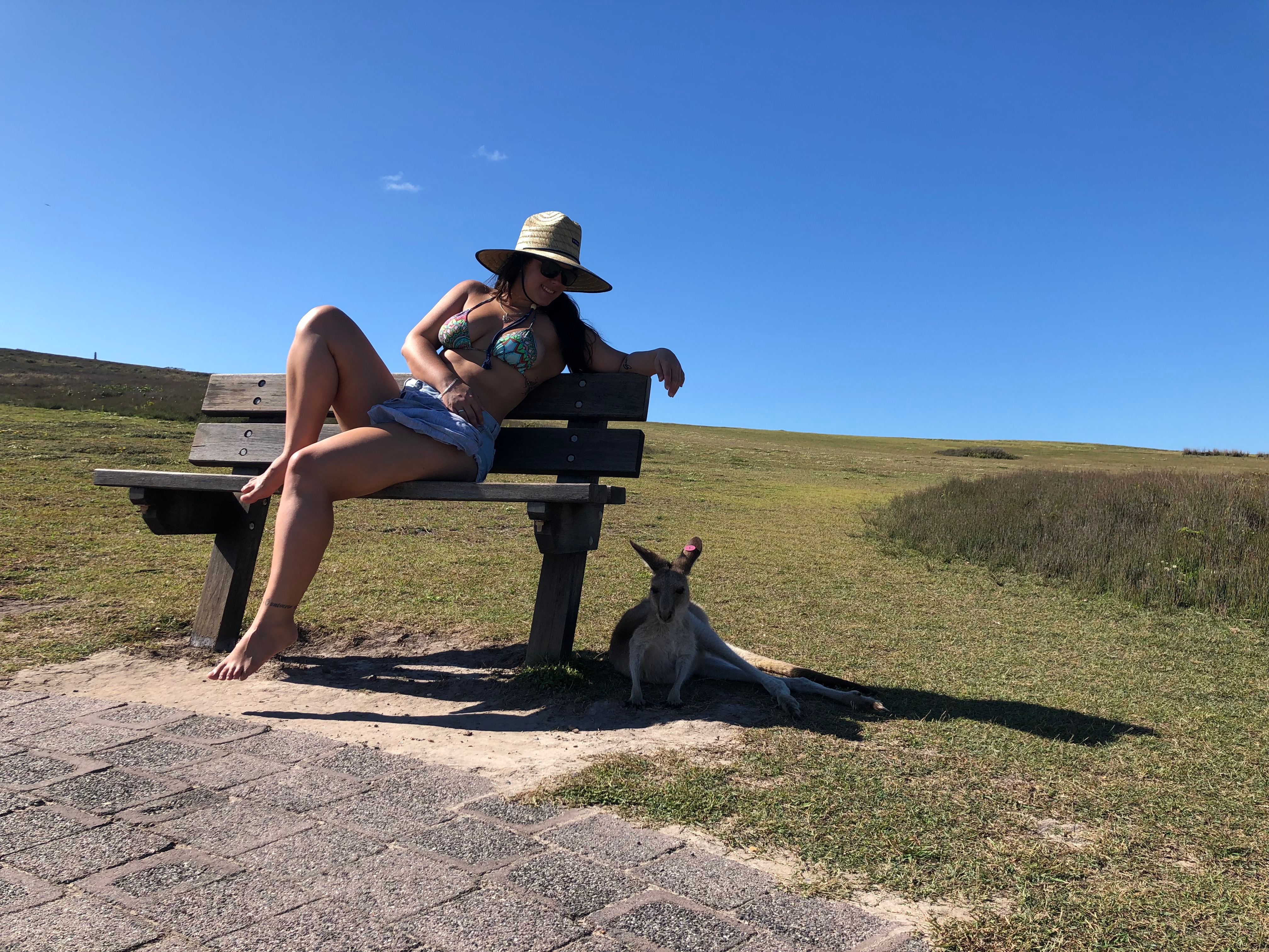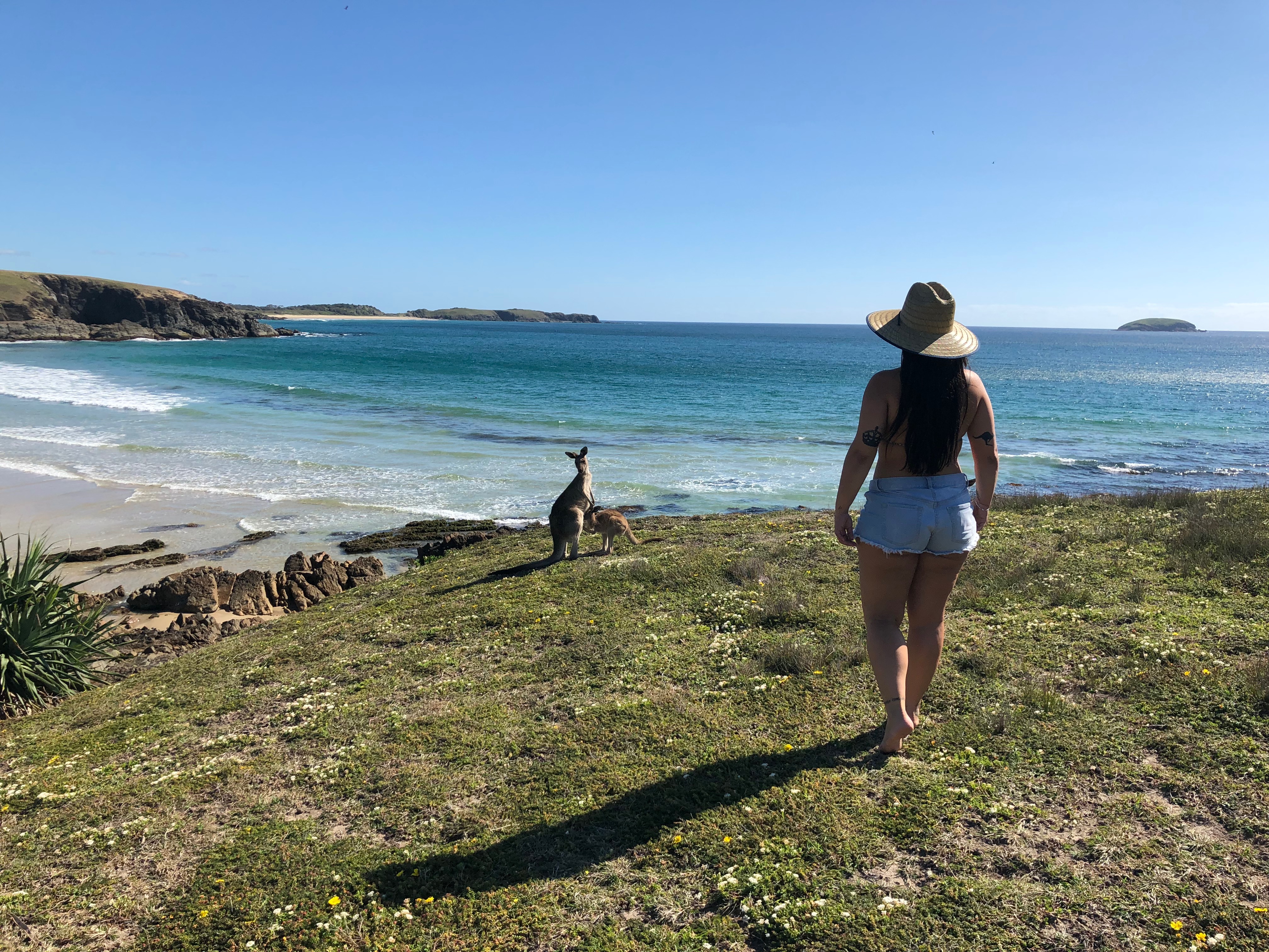 Acordamos cedinho com o sol nascendo do mar e não me canso de dizer o quanto acho isso sensacional e aprecio momentos assim. Quando fui tirar uma foto, os cangurus apareceram para nos dar bom dia, foi incrível.