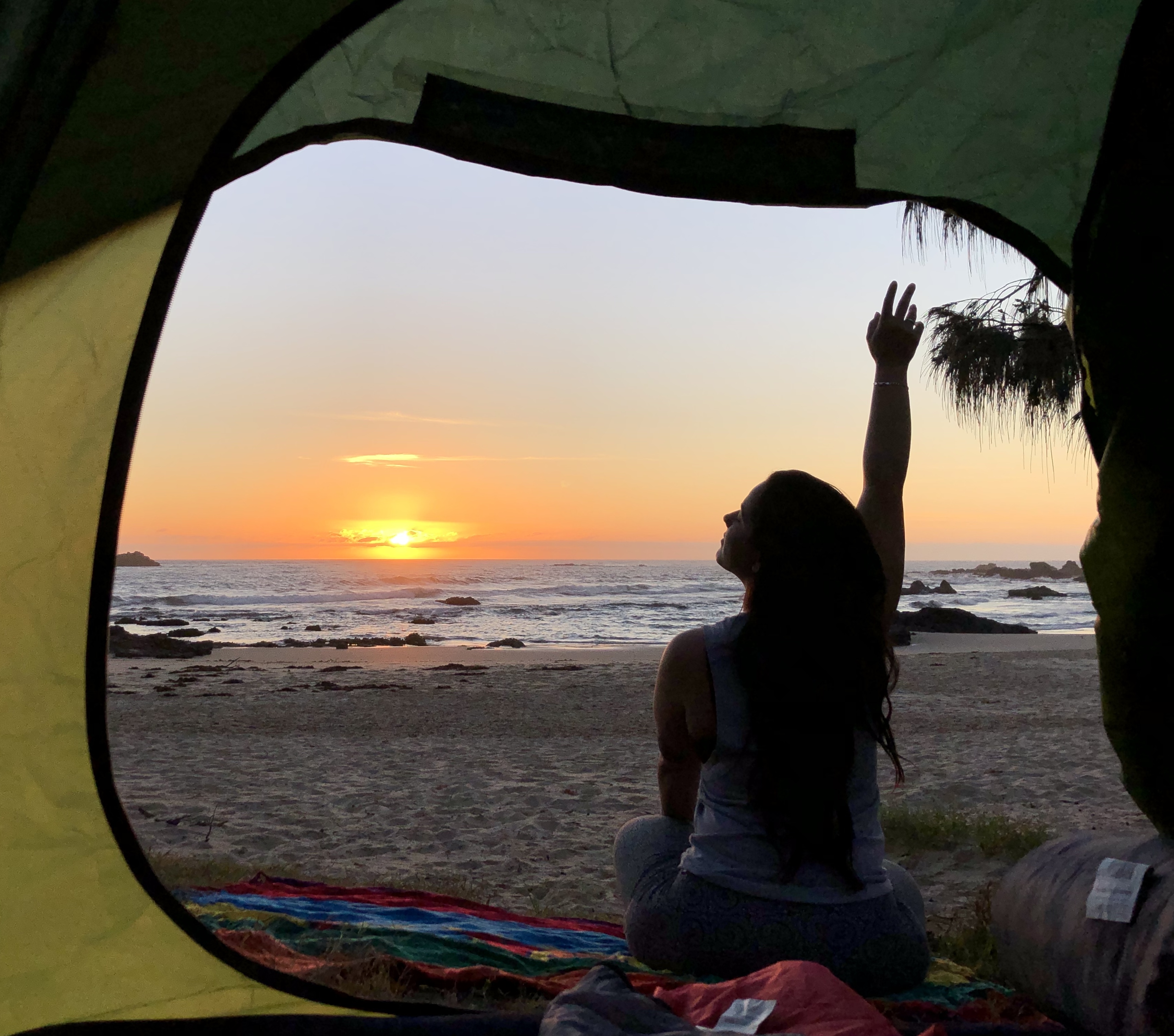 Eu e o meu namorado já tínhamos vindo uma vez para cá e acampamos numa praia que agora não rola mais porque como a cidade tem uma onda meio hippie, eles começaram a ficar mais restritos. O problema não era nem acampar na praia, porque isso já estou mega acostumada, mas sim que em praticamente toda cidade tem placa de proibido estacionar da 1 as 6 da manhã! Acabamos dormindo na Clarkes Beach que fica ao lado da Main Beach, bem no centro mesmo, pois lá não tinha placa.