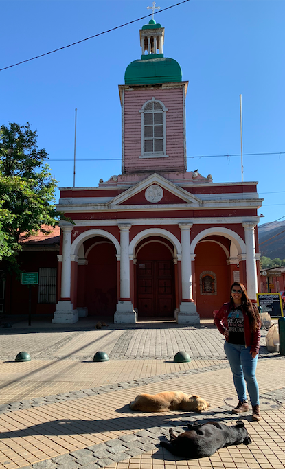 Antes de chegar no destino final, paramos em San José del Maipo e vimos por fora a igrejinha da região super antiga e ali o guia aproveitou para comprar as coisas do picnic. Depois mais a frente tem como uma cachoeira chamada Salto el Yeso que não é muito recomendado nadar pois se abrirem a água da represa virá uma enxurrada de água – mas mesmo assim no verão fica cheio.