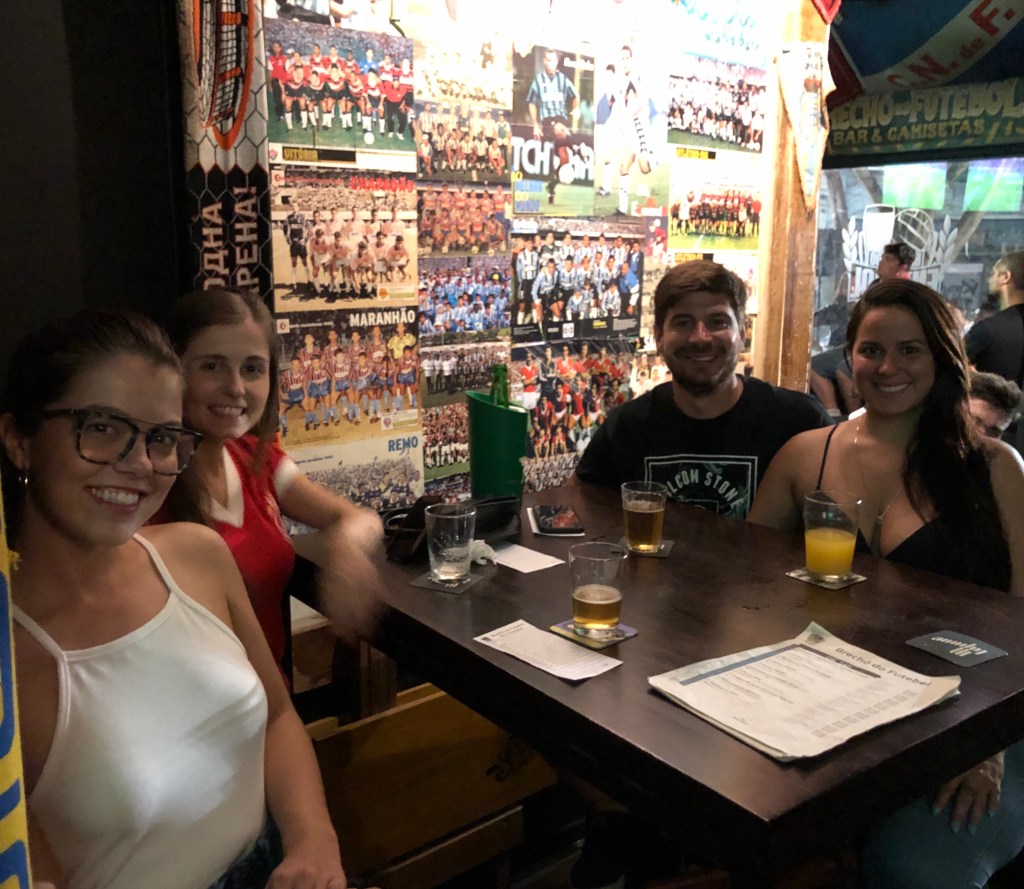 Pegamos um Uber de volta para o apartamento da Marília para nos arrumarmos para sair. Ia rolar jogo do Internacional x River Plate e fomos no Brechó do Futebol assistir o jogo com a minha amiga gaúcha que torce pro Inter e uma amiga dela. Tomamos uns drinks e ficamos por lá curtindo. Achei bem autêntico o bar. (R$62 casal).