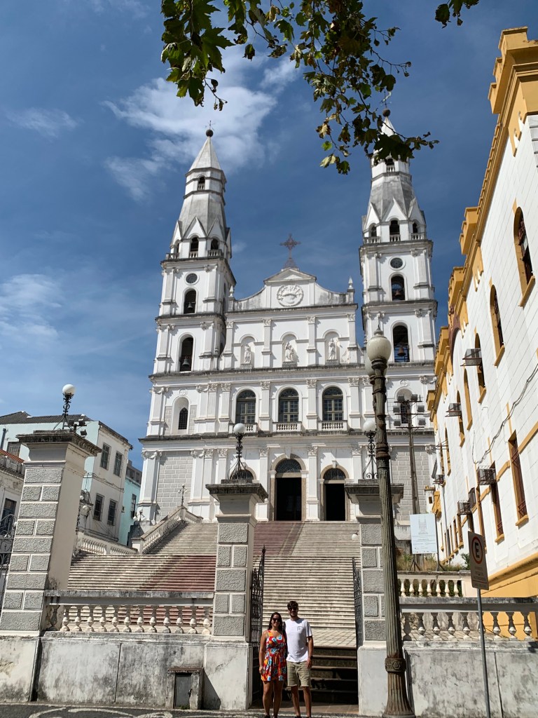 Seguimos caminhando pelo centro passando pela Igreja Nossa Senhora das Dores e sua escadaria enorme. Bem na hora que fomos tirar foto passou um grupo de crianças de escola e ficaram mexendo conosco haha.