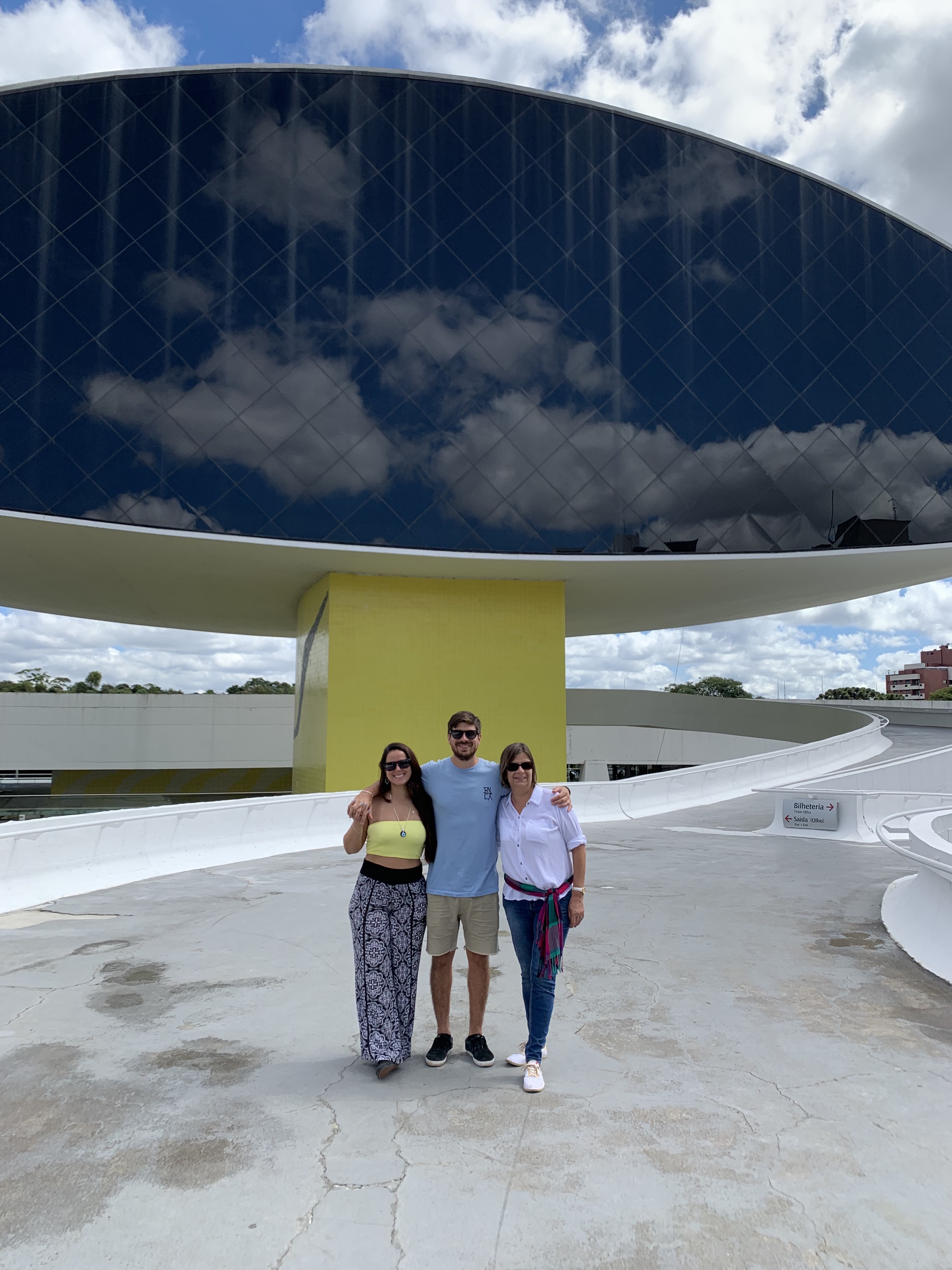 Fomos até a Praça Nossa Senhora de Salette aonde fica o Centro Cívico da cidade e seguimos até o Museu Oscar Niemeyer. O prédio que abriga o museu por si só já é incrível mas decidimos não entrar para conhecer. Ah, aproveitamos para tirar uma foto no ponto de ônibus da cidade, muito interessante.