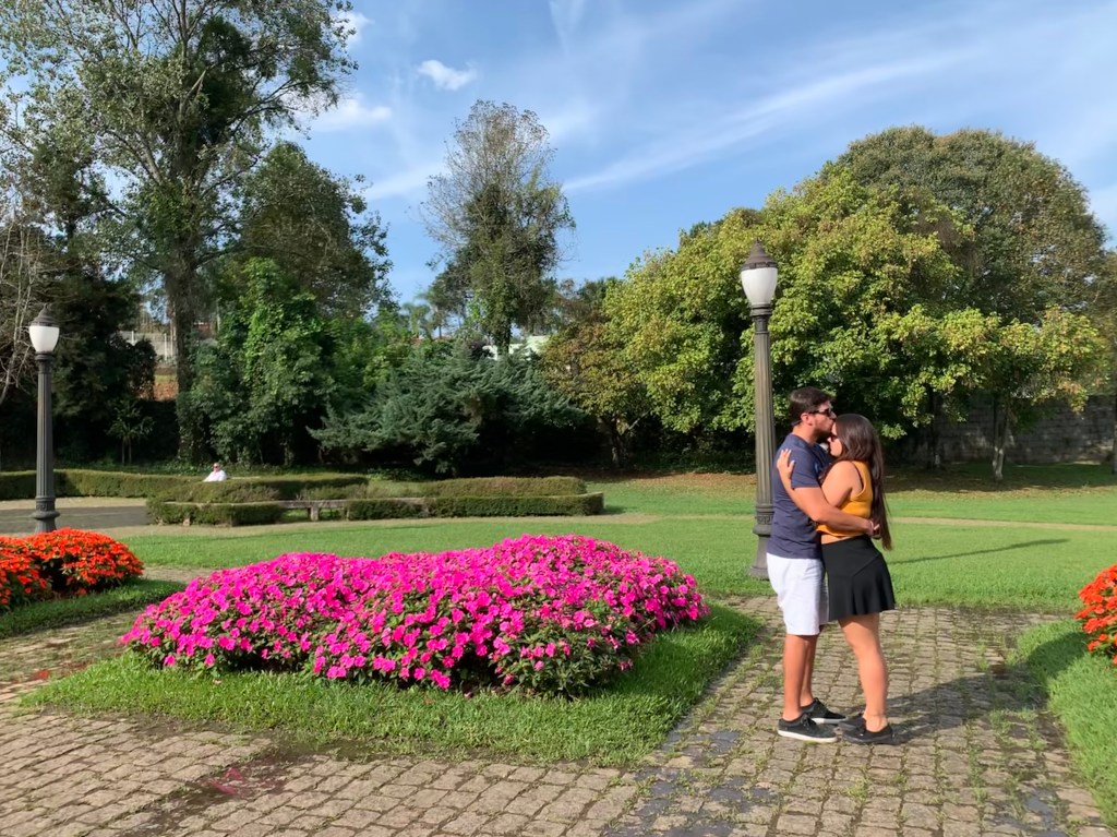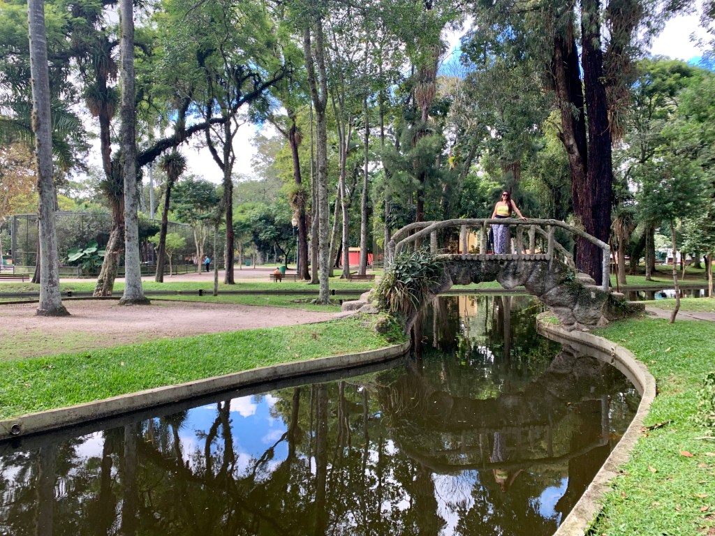 Pegamos então um Uber para o Bosque Alemão e infelizmente no caminho recebi a notícia que meu avô havia falecido (12 abril 2019)! Fiquei bem mal, sentei no parque um tempão chorando e fomos dar uma volta pra relaxar. Pensei em ir para casa, porém sabia que naquele momento não havia mais nada a ser feito infelizmente, então seguimos… O parque é bem bonito e no bosque tem o Caminho dos Contos que conta a história de João e Maria – que para quem não sabe é uma história criada por dois irmãos alemães. No caminho passamos inclusive pela Casa da Bruxa aonde em alguns horários tem bruxas e fadas contando a história para as crianças. O local também é bem popular com os fotógrafos.