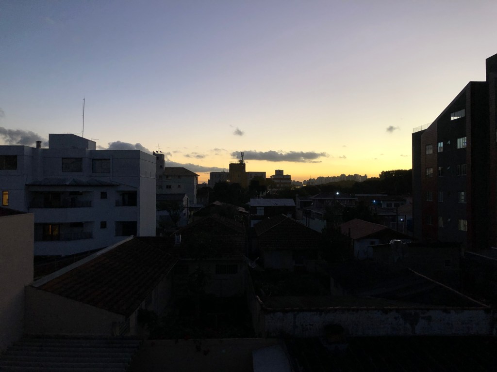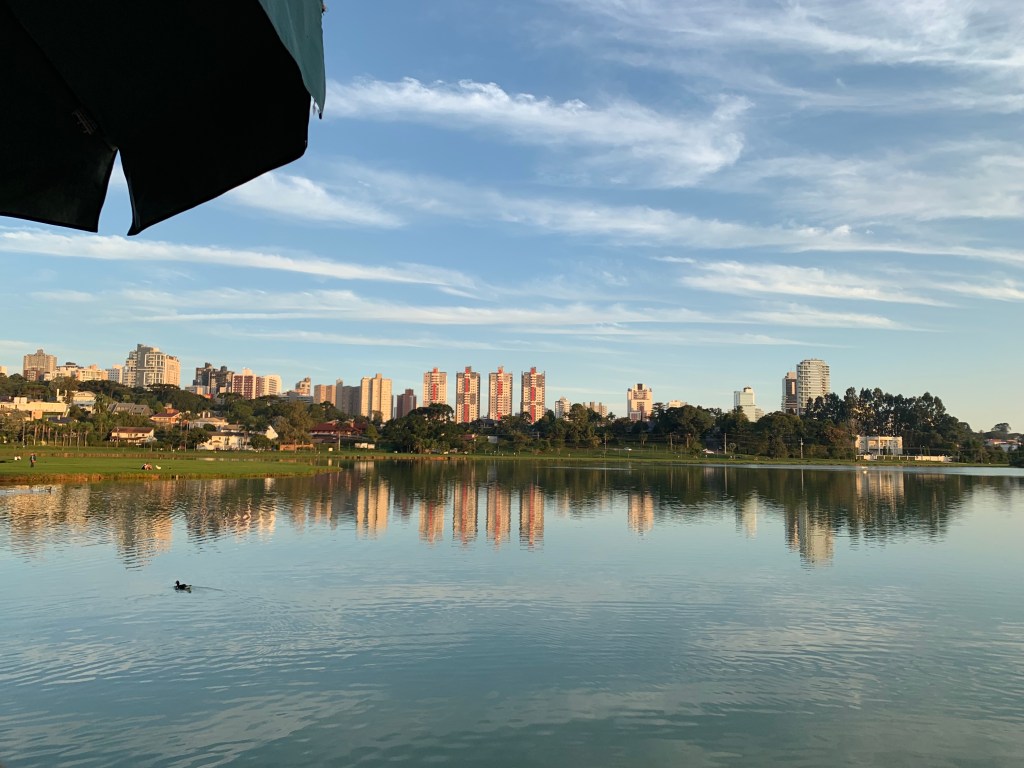 É um parque enormeeeee, muito bonito mesmo! Por lá vimos um pessoal sentado conversando, outros correndo e caminhando, uma galera nos restaurantes comendo e bebendo, enfim, um parque mega agradável com um lago lindo. Aproveitamos para comer por lá no Bar do Lago Parque Barigui e aproveitar o fim de tarde enquanto o sol se punha e os prédios refletiam no lago, sensacional. De lá, pedimos um Uber para voltar para o AirBnb pois com o acontecido tivemos que pegar um ônibus noturno para voltar para São Paulo pois o nosso vôo chegaria meio dia e o enterro do meu avô seria as 9 da manhã.