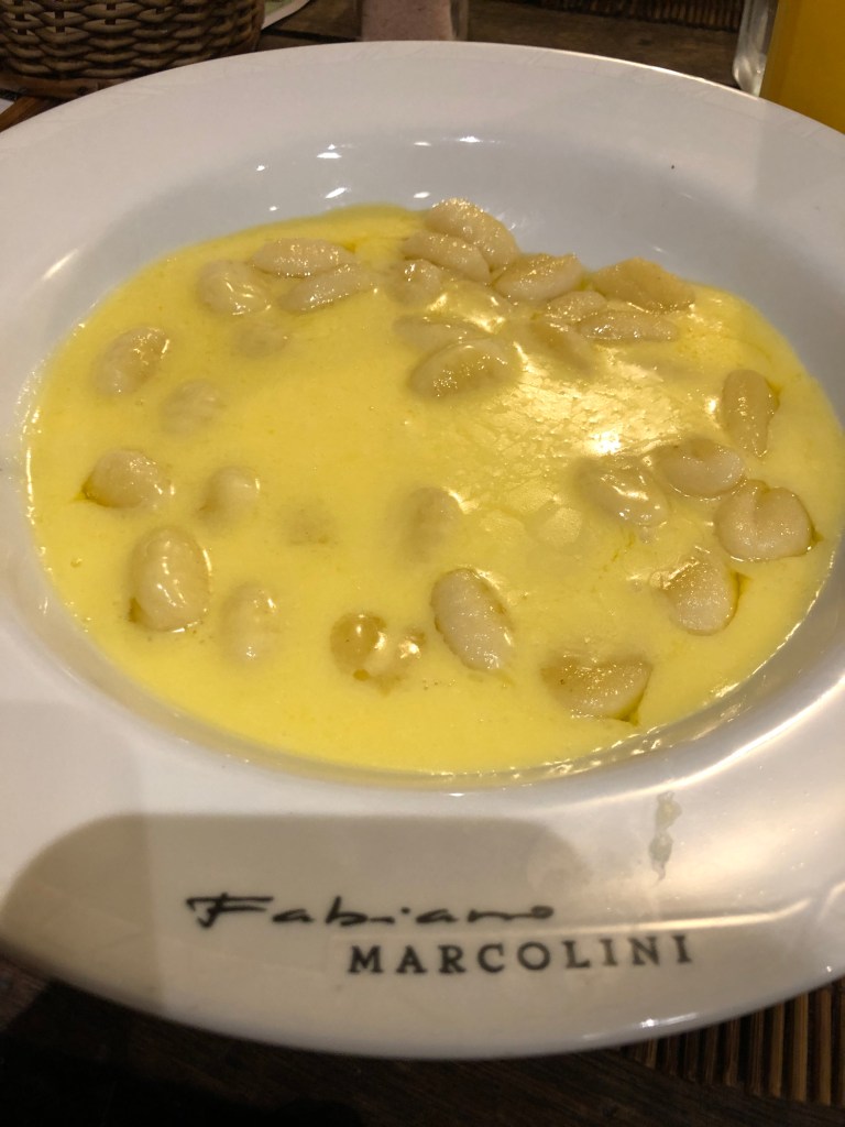 Depois de muito andar, já era umas 2 da tarde e decidimos ir almoçar. Uma amiga – a Bruna – recomendou ir na região do Batel, no Fresh Live Market – um local que tem vários restaurantes diferentes num estilo mais descolado – e fomos. Chegando lá nos deram a informação dizendo que abriria as 4 da tarde, como estávamos por lá já, demos uma volta no bairro, fomos no Shopping, sentamos um pouco e voltamos. Quando voltamos outra pessoa disse que não abriria até as 6pm – fiquei muito brava, que sacanagem! Acabamos comendo num restaurante italiano ali do bairro Fabiano Marcolini Alimentari – comi um gnocchi bem gostoso com direito a um canoli sensacional de sobremesa. De lá, Uber pra casa e descanso.