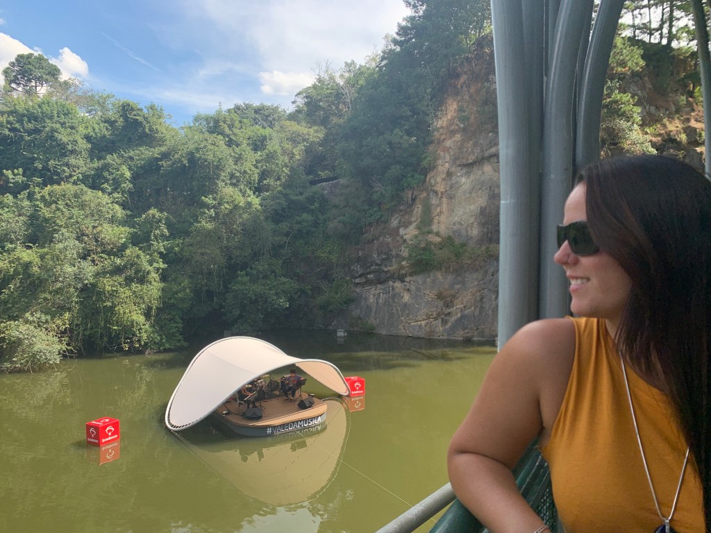 Tomamos café da manhã em casa e fomos dar uma volta no Mercado Municipal para comprar lembrancinhas da cidade. De lá pegamos um Uber até a Ópera de Arame e fiquei encantada. O lugar é muito bonito e tinha uma banda tocando numa plataforma no meio do lago, super gostoso ficar ali relaxando – projeto Vale da Música e por esse motivo pagamos R$10 de entrada.