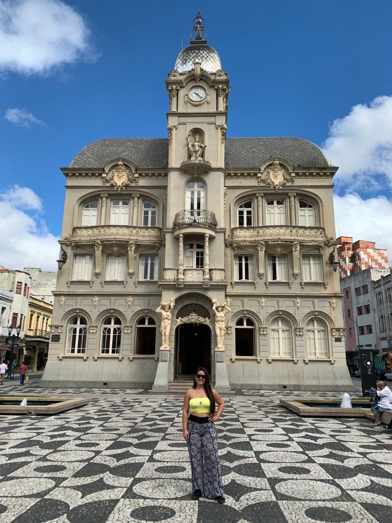 Pela caminhada no Centro, passamos pelo Paço da Liberdade – detalhe pro chão que achei uma graça. Antigamente o prédio era sede da Prefeitura de Curitiba e hoje abriga um espaço cultural.