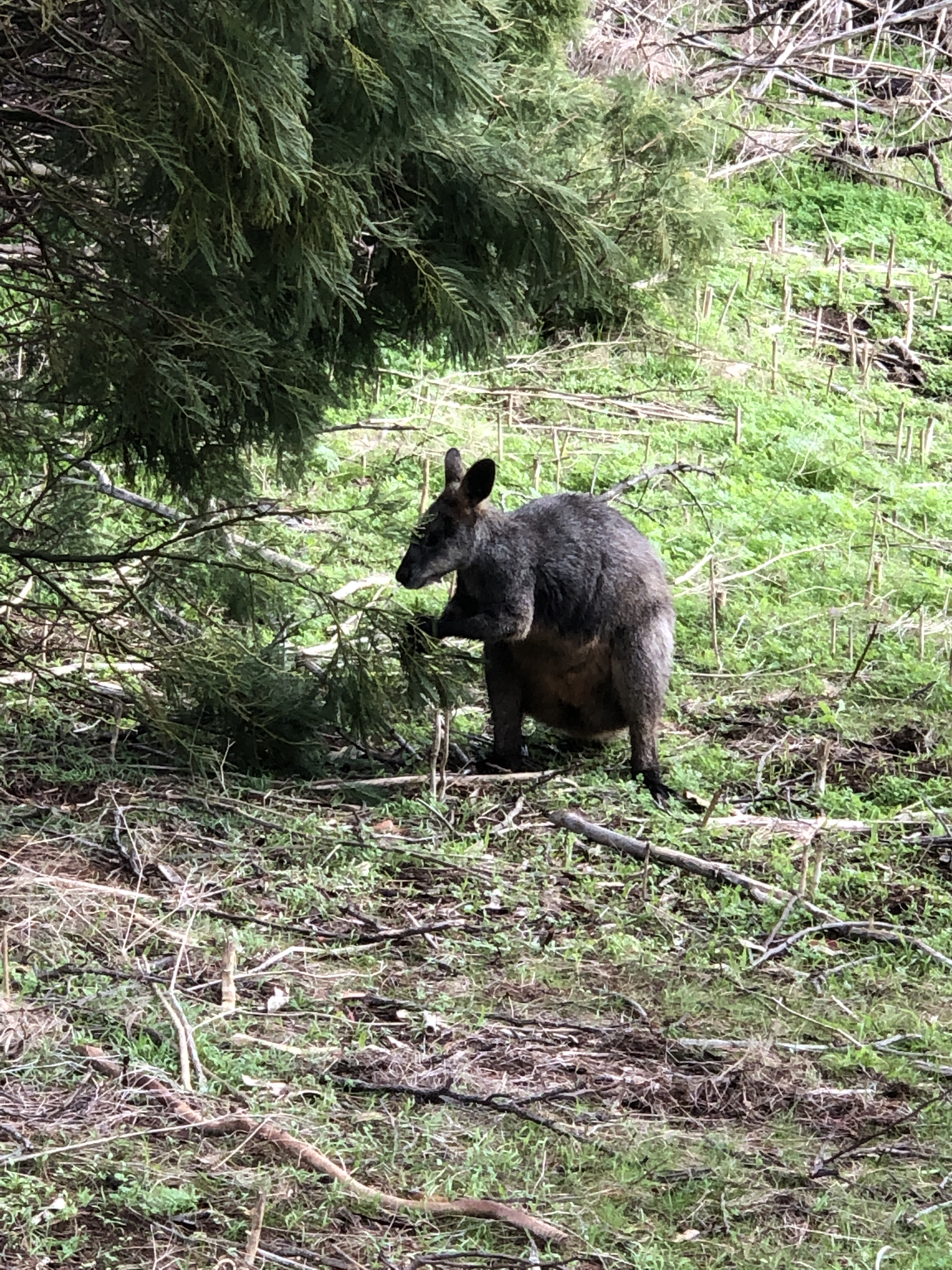 Seguimos então até Griffiths Island. Estacionamos o carro e cruzamos a pé por um caminho que tem. Fizemos parte da trilha até o farol passando por uma praia com água super cristalina e na volta cruzamos com diversos wallabies. Amo isso!