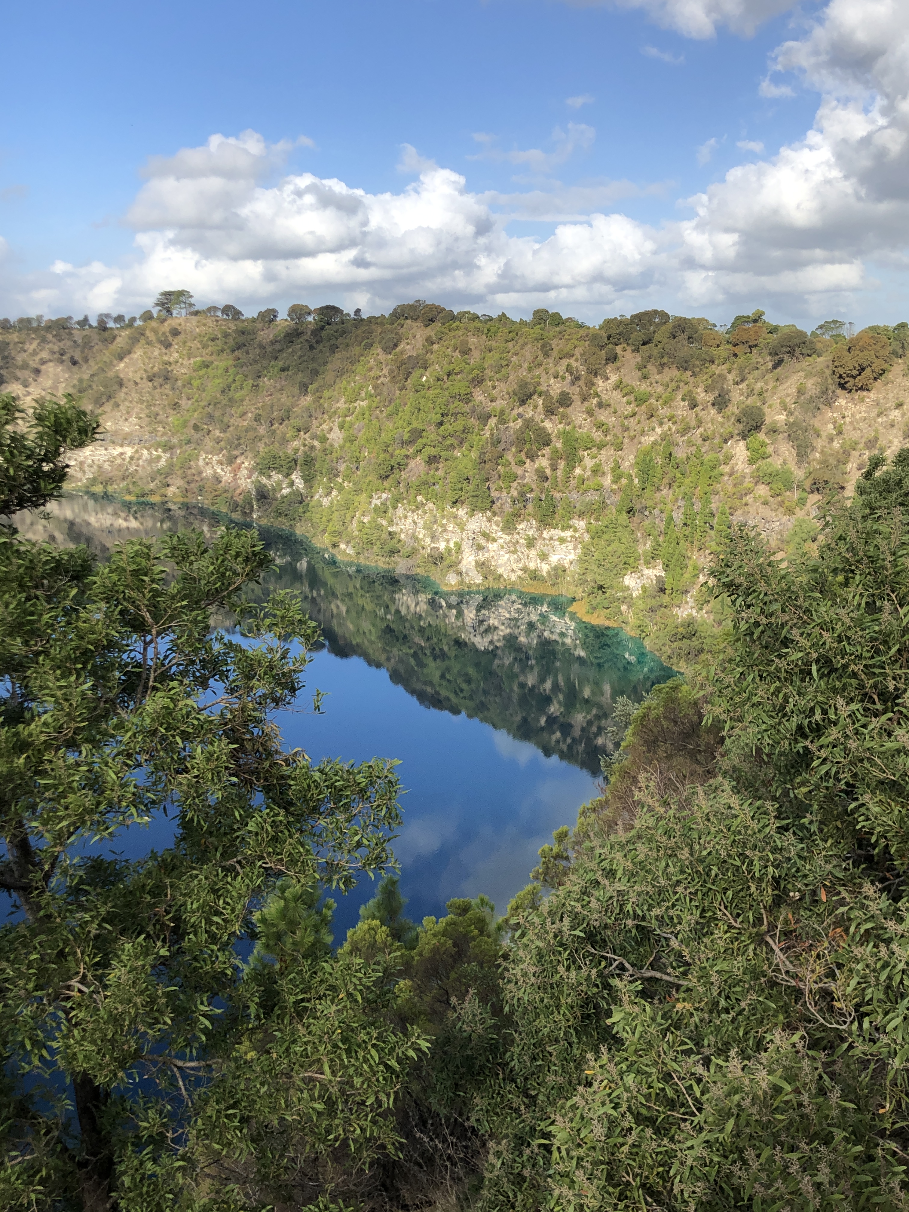 De lá aproveitamos para ver o maravilhoso Blue Lake no Mount Gambier. Ele é um espelho azul com bordas verdes. Abastecemos ($25) e seguimos viagem.