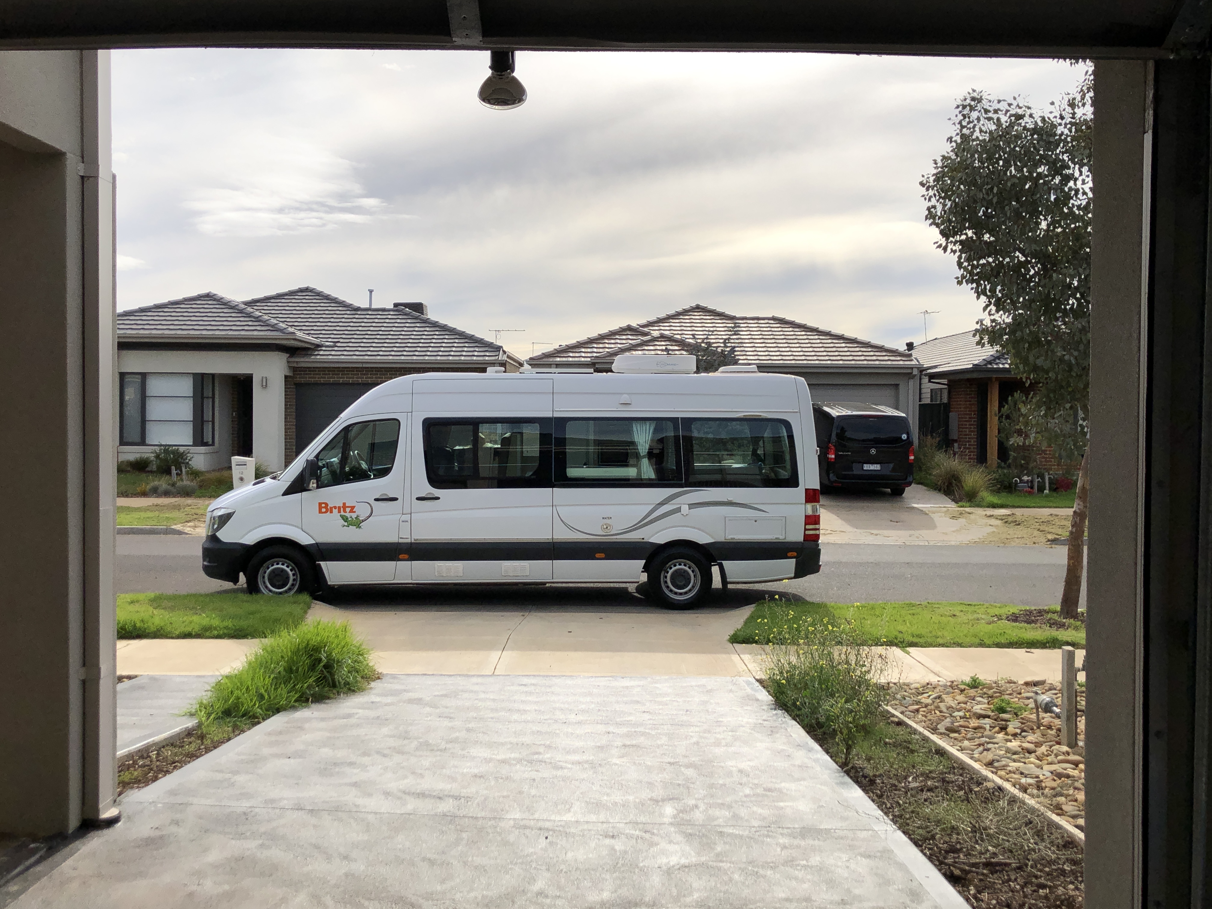 Continuando a viagem, fomos até o estacionamento da Britz em Melbourne e pegamos outra motorhome da Britz pela iMoova.com para ir até Adelaide, dessa vez uma de menorzinha de 3 lugares. Pagamos o depósito de $1000 e $25 de taxa mais $15 pelos 3 dias de relocação.