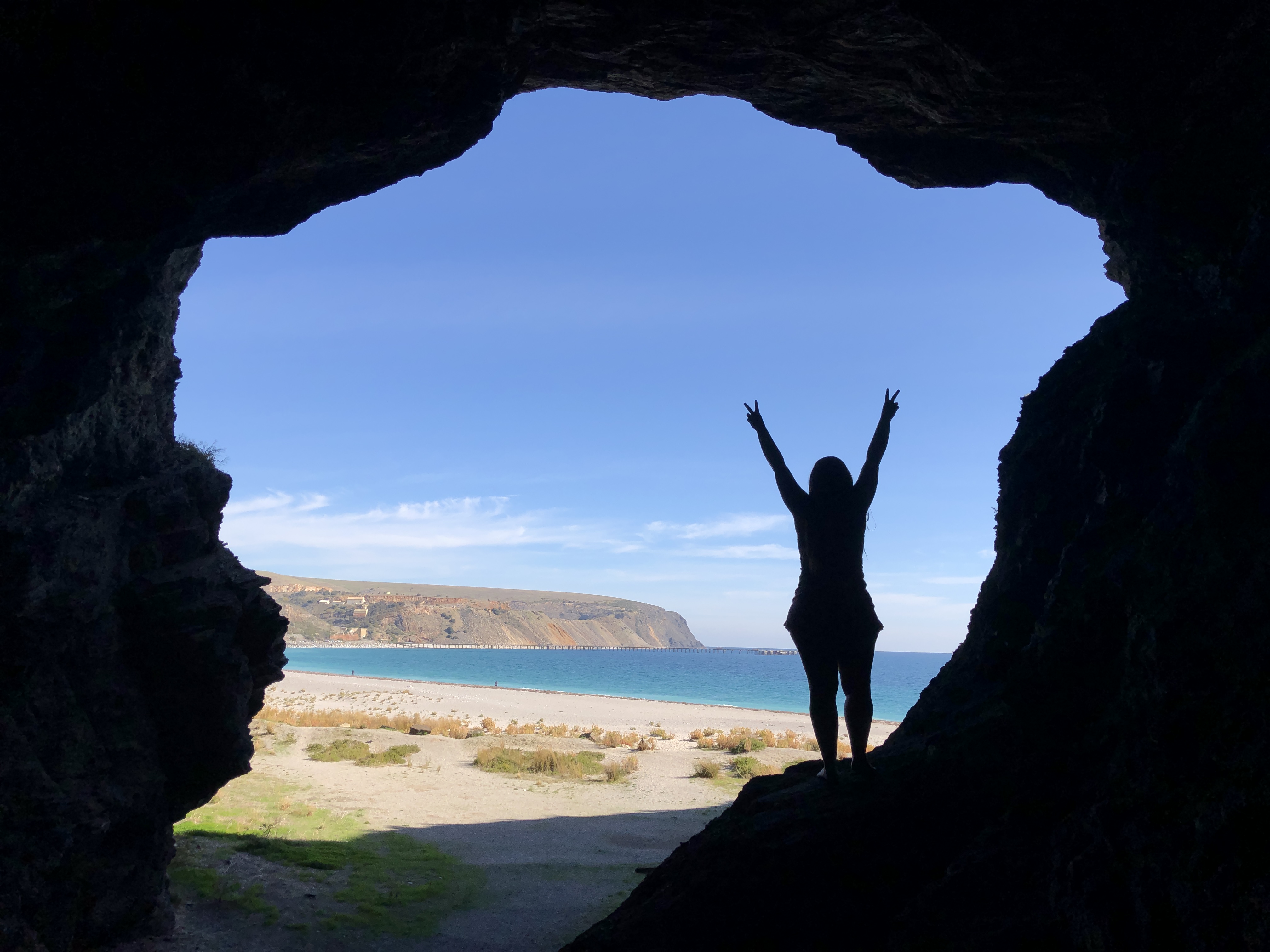 O caminho para lá é super bonito, de deixar de boca aberta e a praia extensa também. Tem um camping e espaço para motorhomes. Caminhamos pela praia até a caverna e amei a vista de lá. Vi também que dá para ir de caiaque a praias do lado que só são acessíveis pelo mar – queria ter tido mais tempo para explorar. E vimos alpacas no caminho haha.