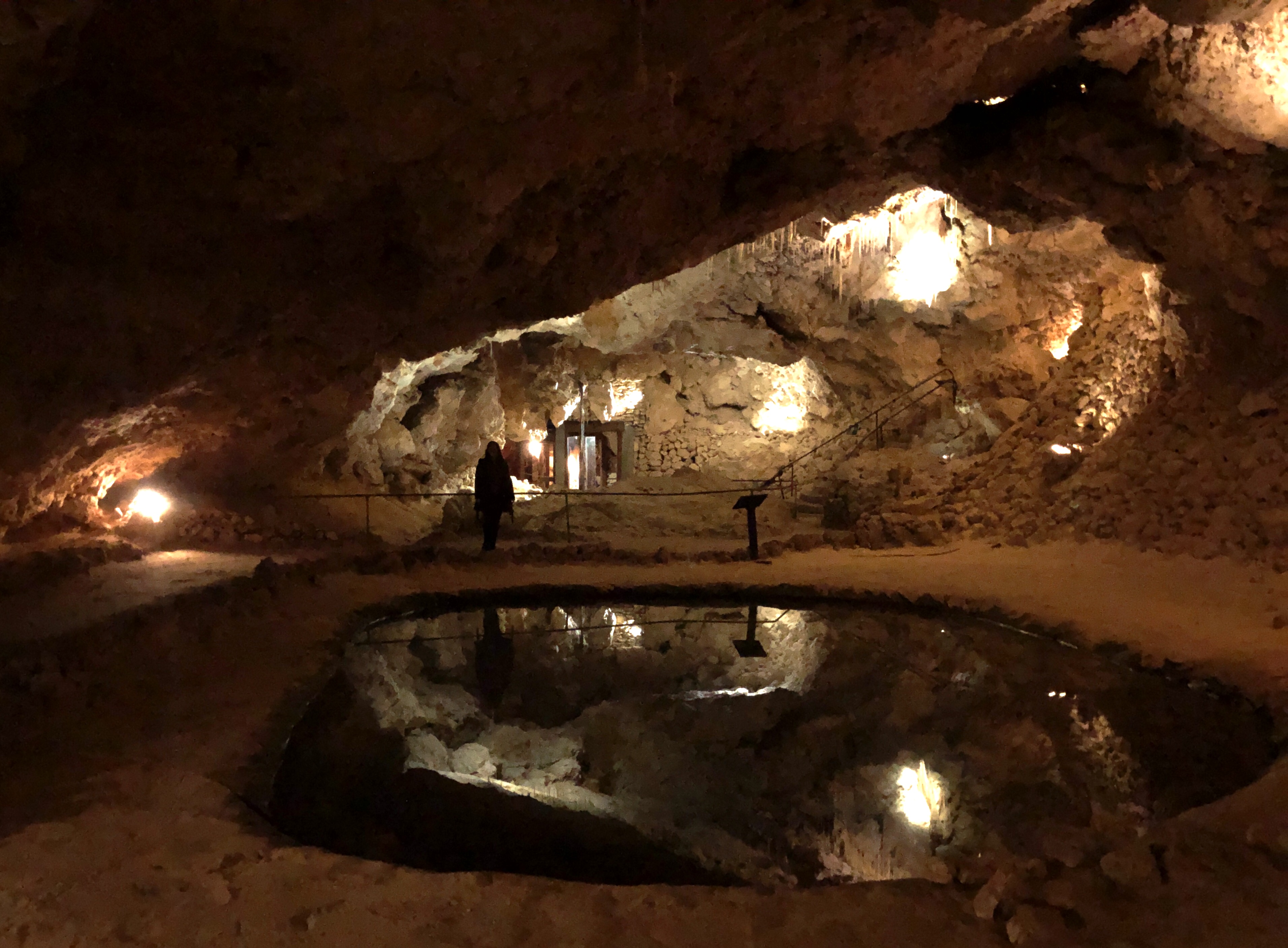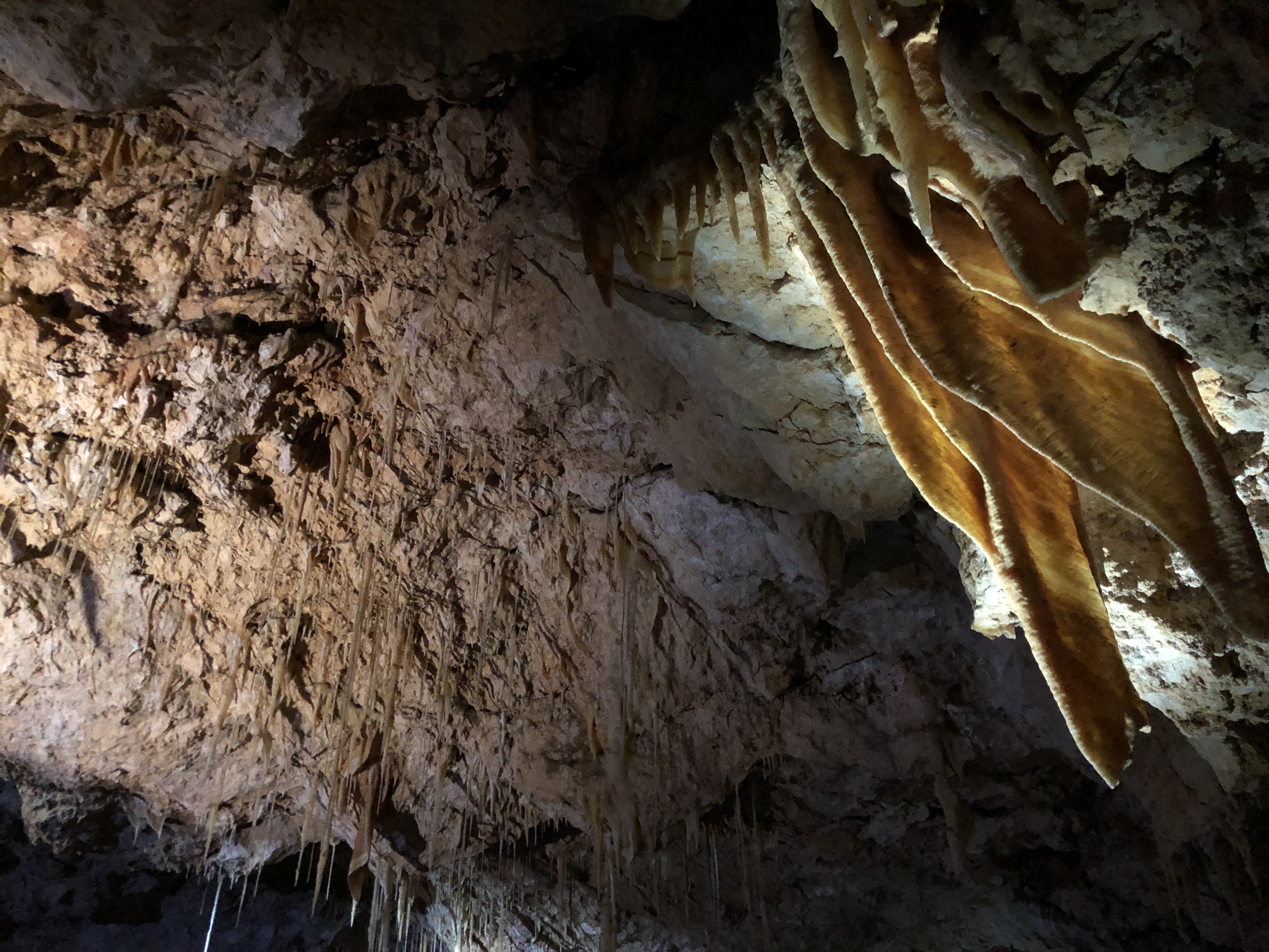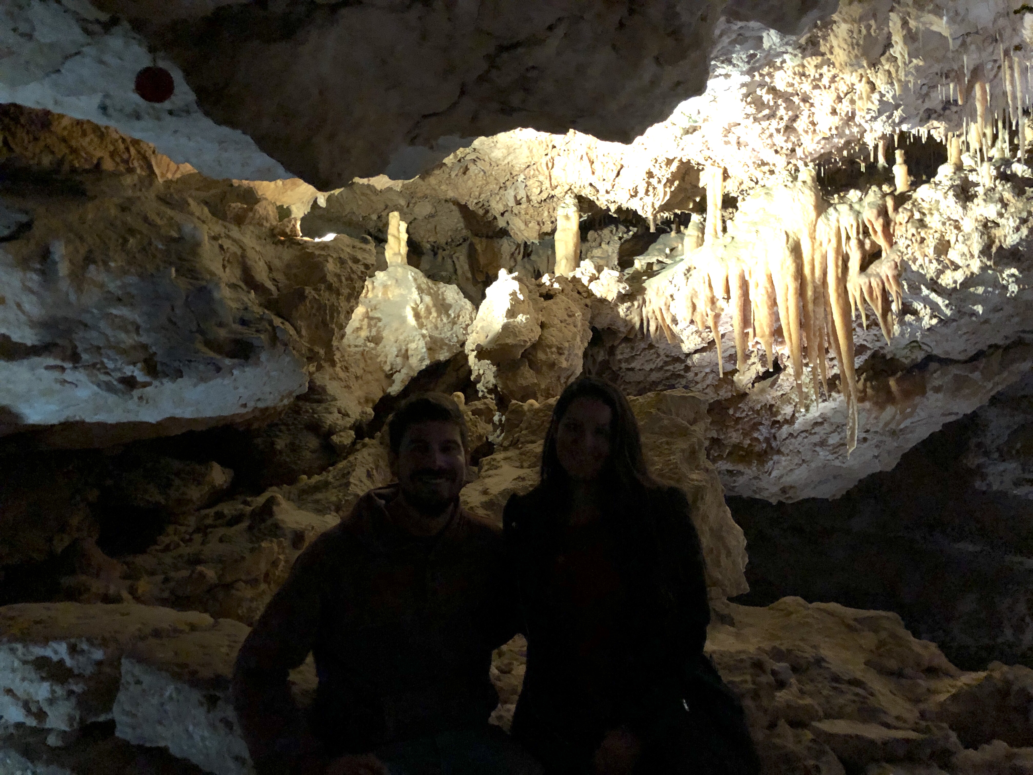 Pegamos o carro até a Crystal Cave e em 3 minutos estávamos lá. Esperamos a guia chegar para começar o tour. Devia ter mais umas 15 pessoas conosco.
