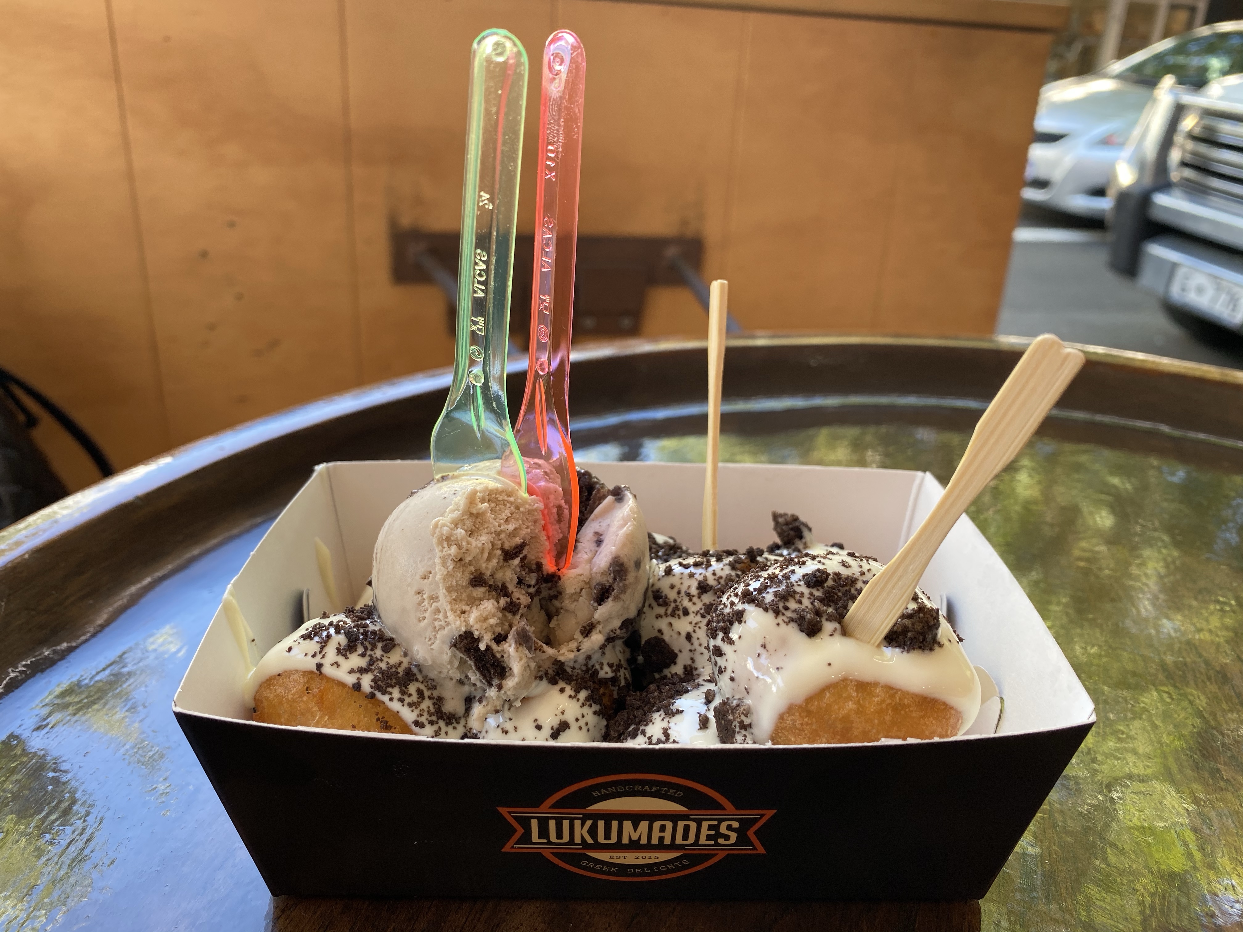 * Lukumades em Subiaco – bolinhas de donuts com cobertura de twix, oreo, Nutella e outras opções.