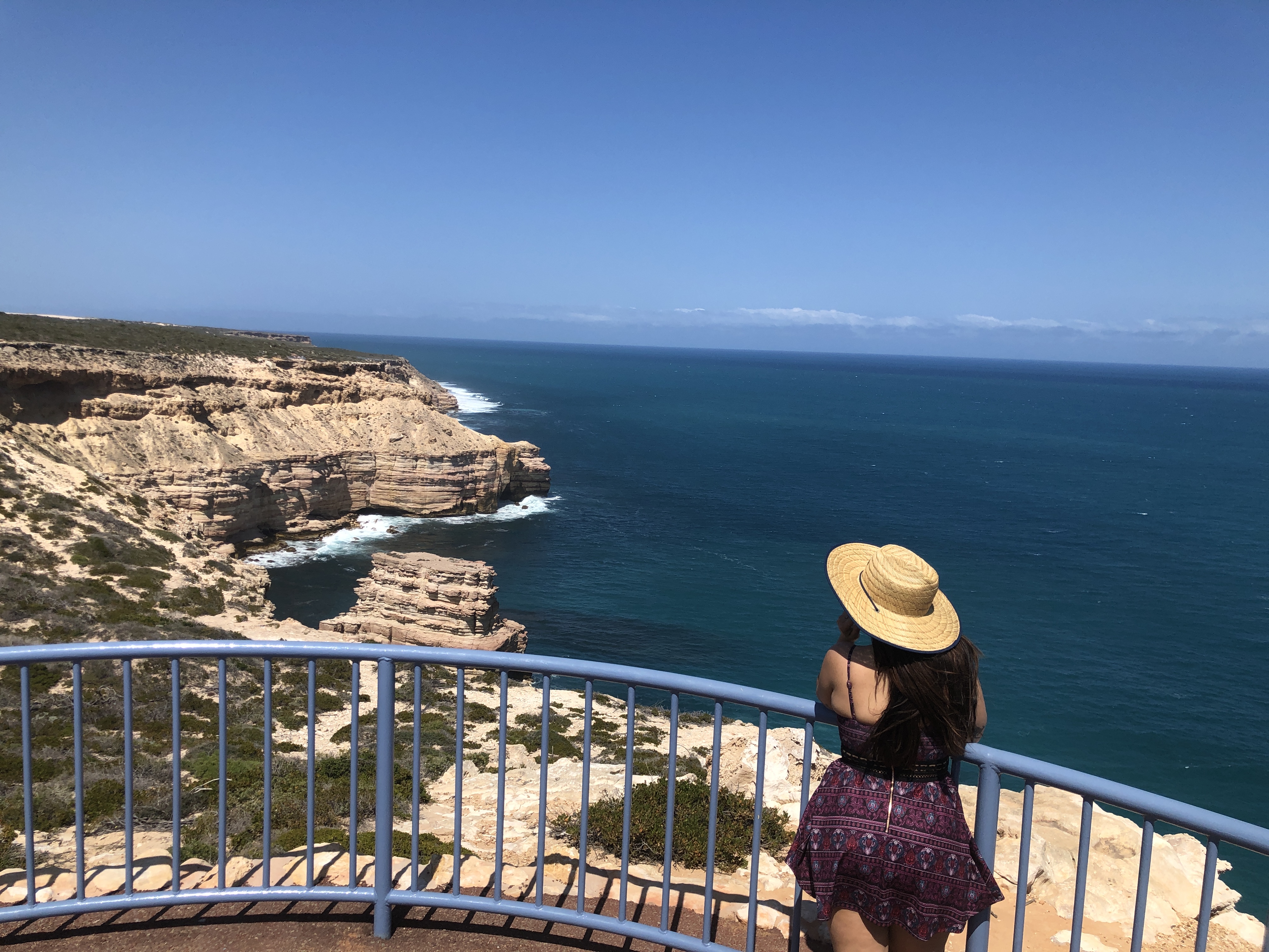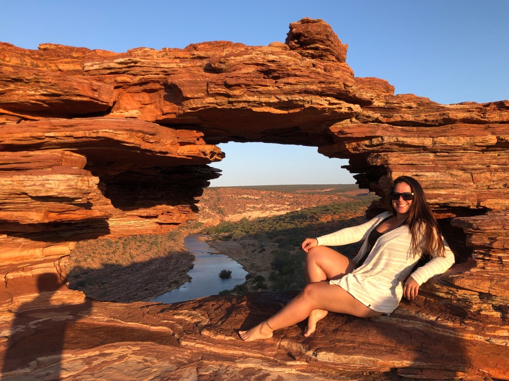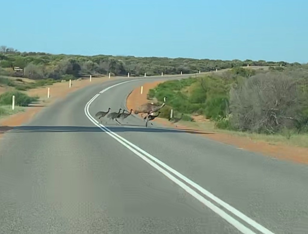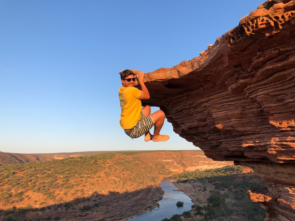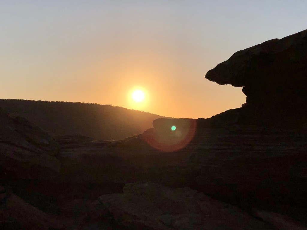 Para ver o pôr do sol, escolhemos ir no Kalbarri National Park ($15 por carro) mais especificamente na Nature´s Window. O único ruim desse lugar é a quantidade absurda de mosquitos que ficam rondando e tentando entrar na boca, nariz, orelha, mas mesmo assim vale a visita. No caminho vimos uma família de emas cruzando a rua haha.