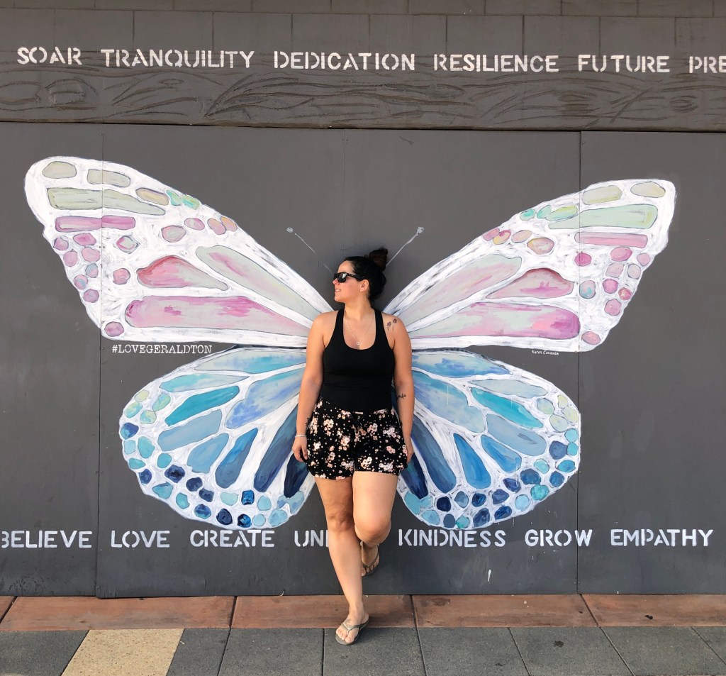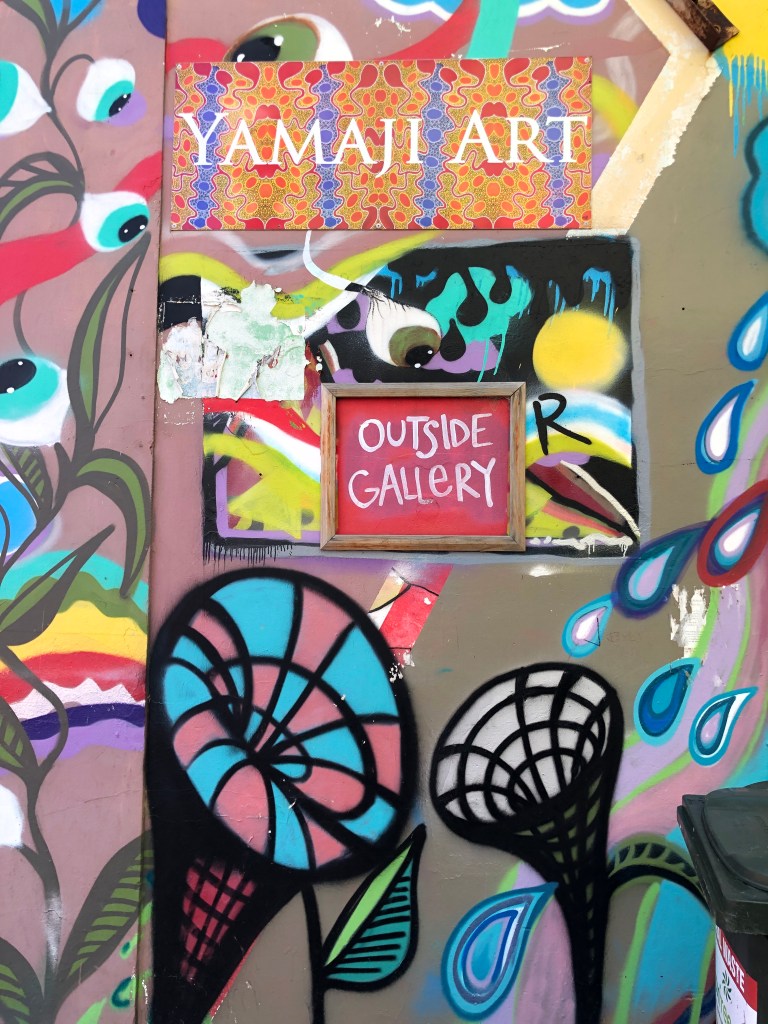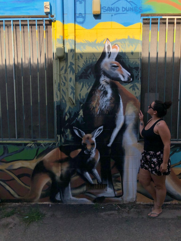 Passamos na Rock Laneway até chegar no Butterfly Wall. Achei bem interessante a Yamaji Art Outside Gallery – uma rua toda cheia de graffitis. Mais uma parada para abastecer ($47) e pegar um sorvetinho ($10) e seguimos viagem.