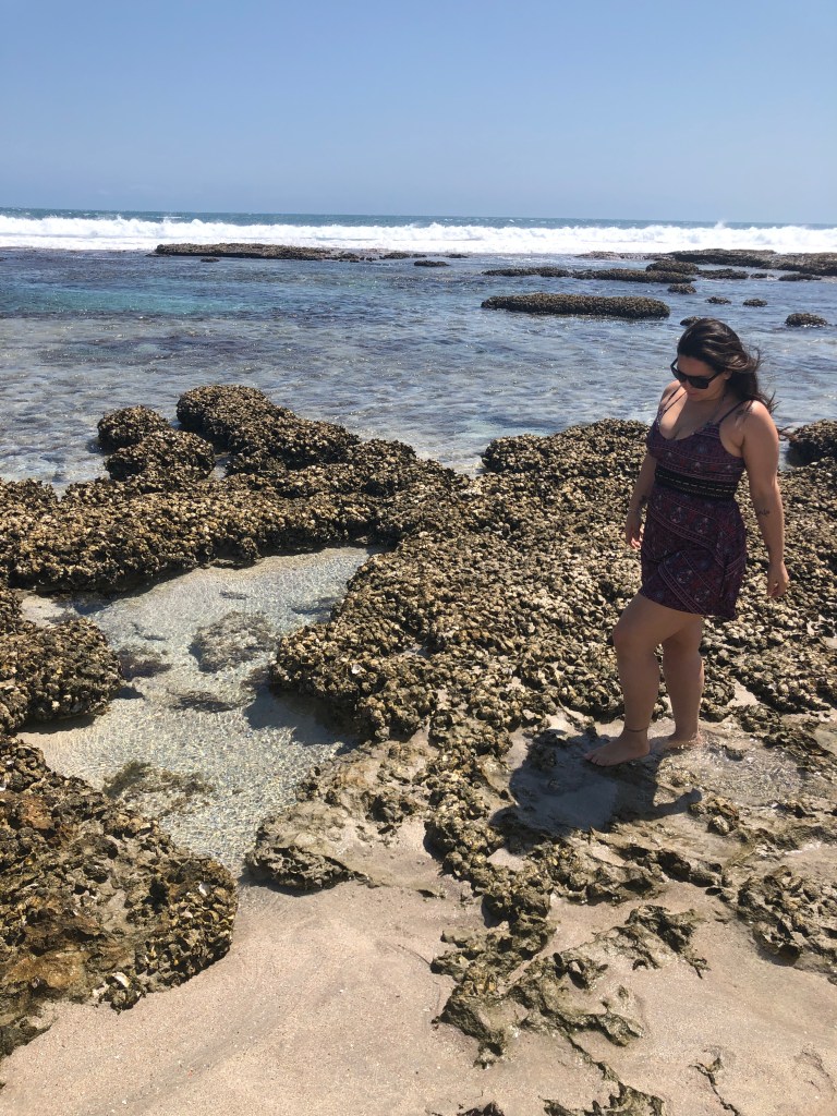 Decidimos fazer o outro caminho que leva até a Eagle Bluff Beach e chegando lá vimos mais de 30 tubarões que deviam ter em média 1-2 metros de comprimento. Não consigo descrever quão sensacional foi isso porque não esperávamos. Caminhamos pela praia antes de continuar a trip.
