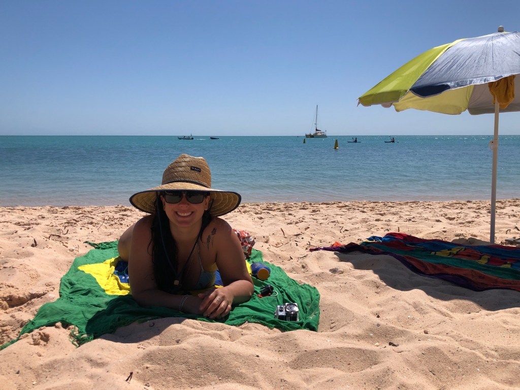 Um dos lugares que mais curti em Kalbarri foi o Blue Holes, simplesmente sensacional. Água cristalina, perfeito para fazer snorkel porém estava muito – muito mesmo – vento então não ia rolar. Mas eu não consigo ver um mar lindo e não entrar, então dei um mergulho rapidinho naquela água gelada hehe.