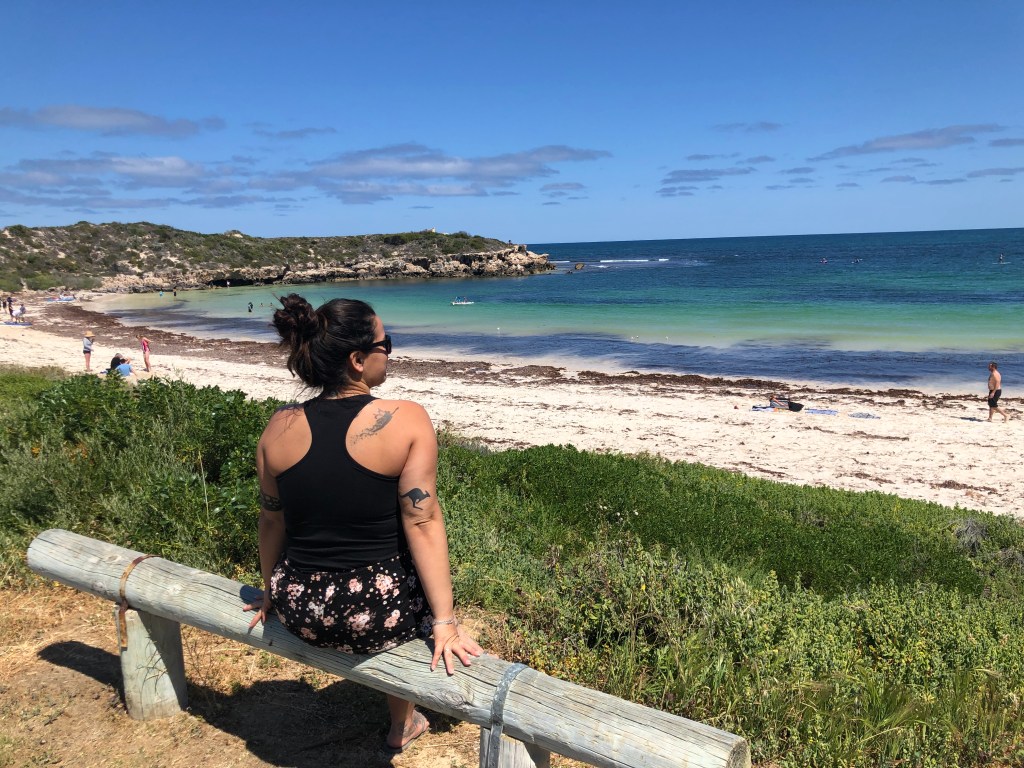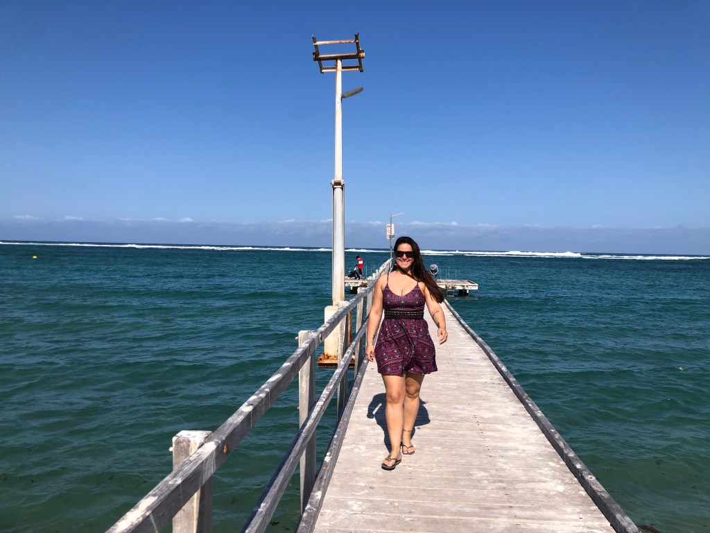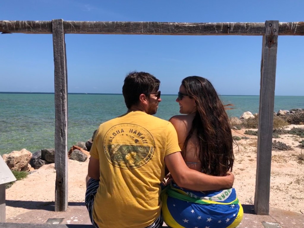 Um dos lugares mais surreais da Austrália sem dúvidas foi Eagle Bluff Lookout. Andamos pelo boardwalk até o fim e sentamos ali para admirar aquele lugar sensacional. Lá de cima era possível ver as arraias nadando e os diversos tubarões também, foi incrível.
