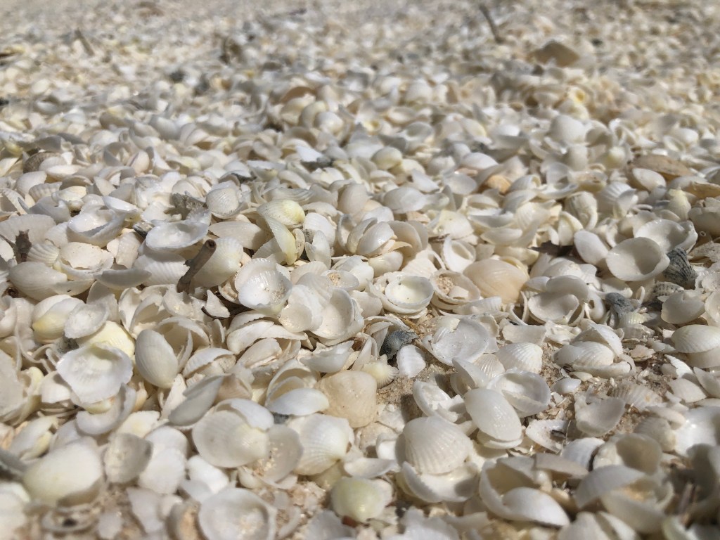 A tal da praia de conchinhas é bem extensa e realmente tem muita conchinha, principalmente branquinha mas vi vários tipos lindos também. Passamos a tarde toda ali, nadei um pouco mesmo com o vento ventania que estava. Tomei banho de garrafa e fomos para Hamelin.