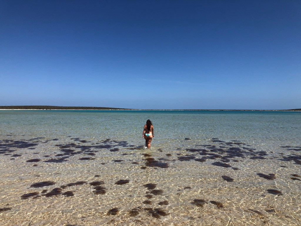 Abastecemos em Kalbarri ($30) e seguimos por mais 4 horas até Shark Bay aonde dirigi mais um pouco. Chegamos bem cansados e uma vez que se sai da principal estrada é uma escuridão sem fim e um céu mega estrelado, muito lindo. Dormimos novamente no carro pois estava muito escuro – e estávamos muito cansados para armar a barraca. Em Shark Bay tem diversas áreas que se pode acampar e escolhemos Fowlers Camp Area. Depois vi que precisa de uma licença mas não entendi como que tira pois não tem nenhum lugar lá para comprar – talvez seja online.