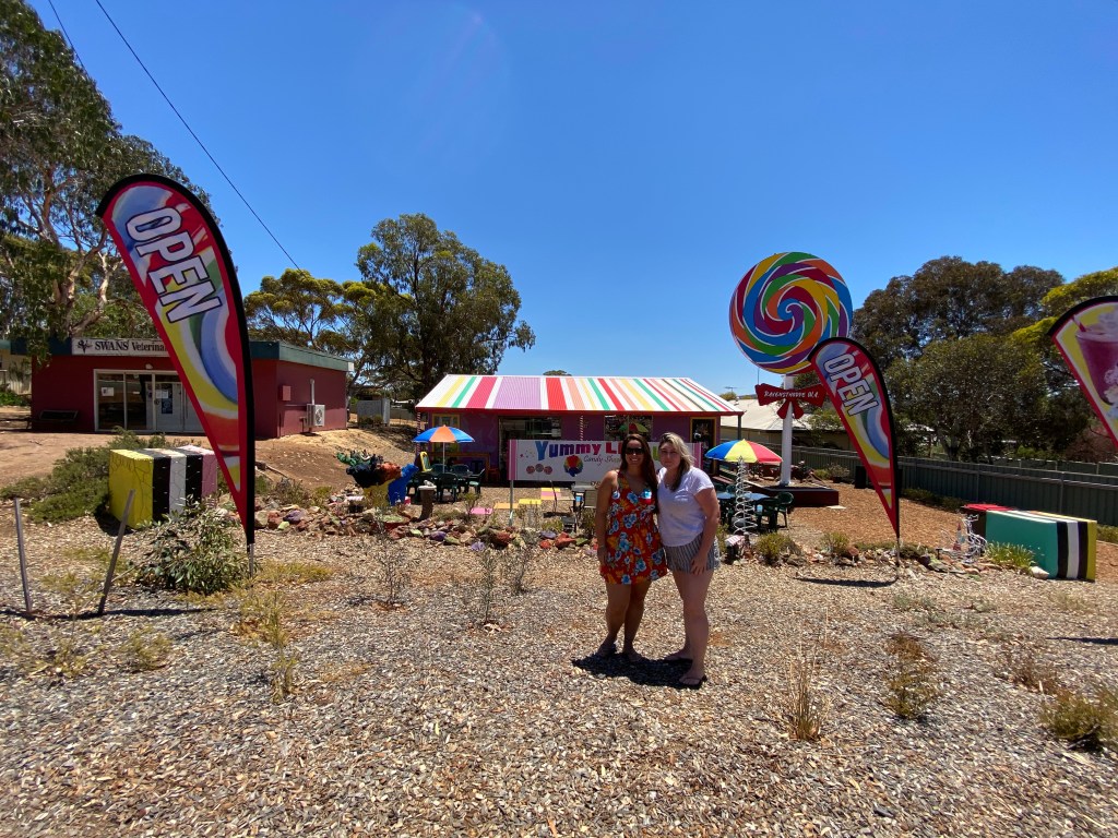 No caminho para Bremer Bay paramos para abastecer de novo ($24) – sempre bom andar com o tanque cheio – e aproveitamos para passar numa lojinha fofa de doces em Ravensthorpe, nos sentimos crianças de novo.