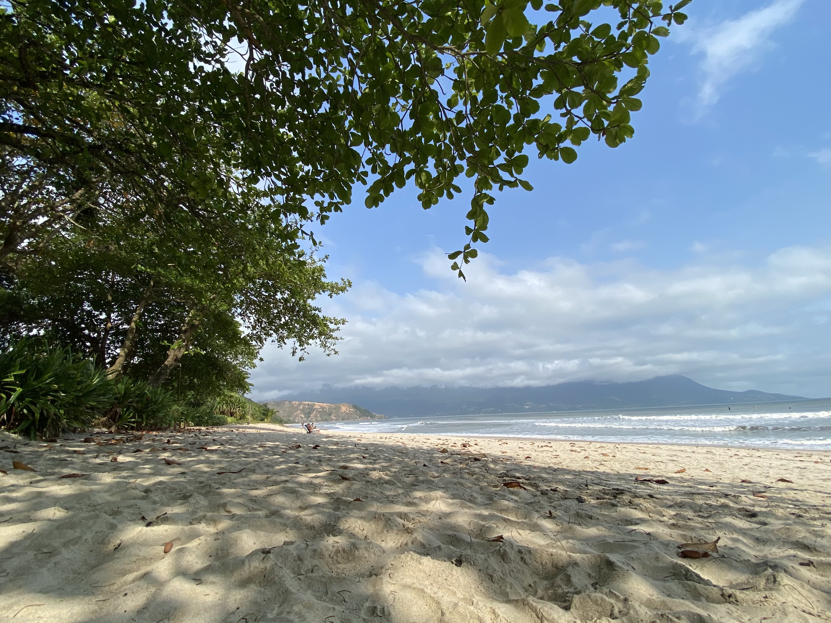 Guaecá é uma das favoritas dos surfistas – e nossa também, mesmo sendo super extensa – pois é bonita, tem bastante sombra e um riozinho. Ah, de lá dá para atravessar a Rodovia Rio Santos e ir ver a Toca do Buraco do Bicho. No canto direito tem a trilha para a Brava, pra Cachoeira do Guaecá e uma pedra que o pessoal costuma pular para mergulhar no mar.