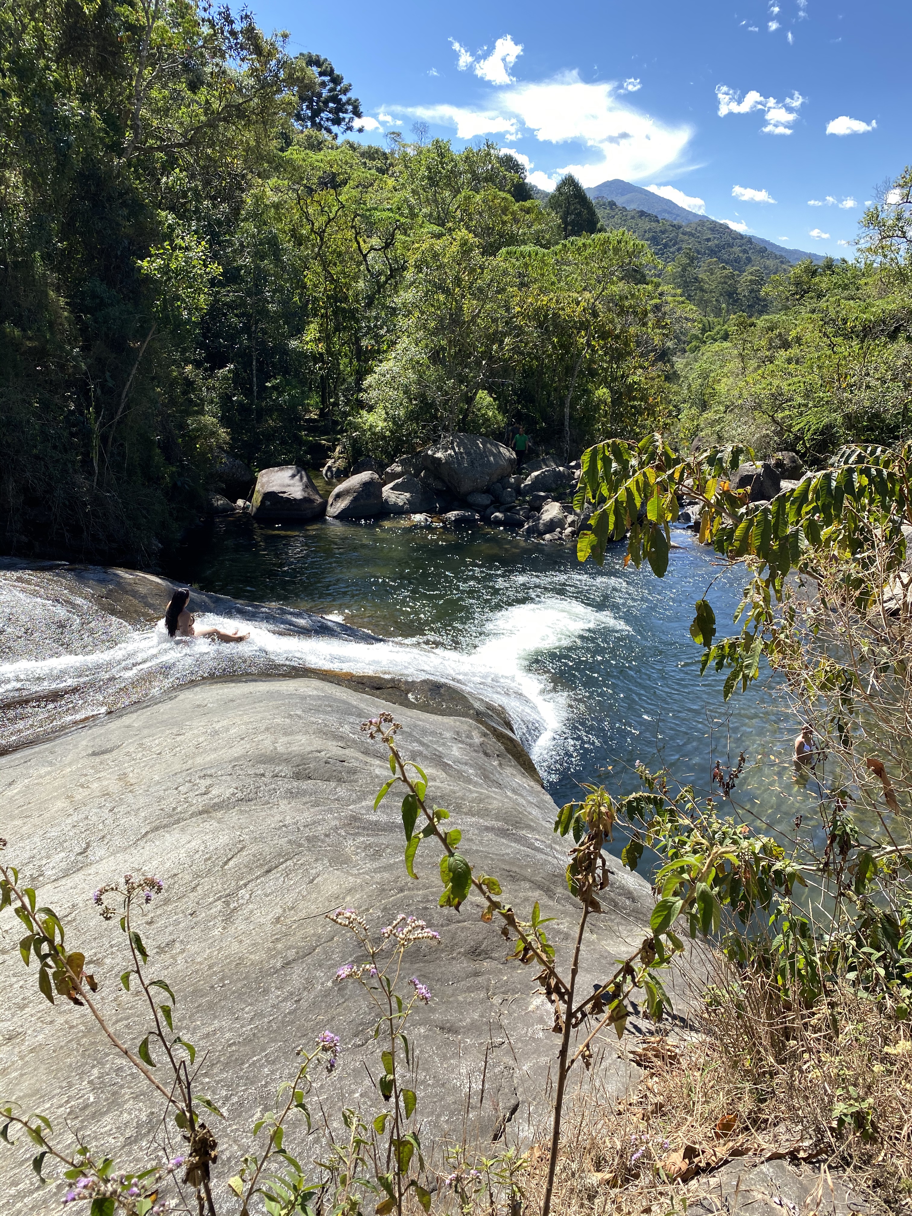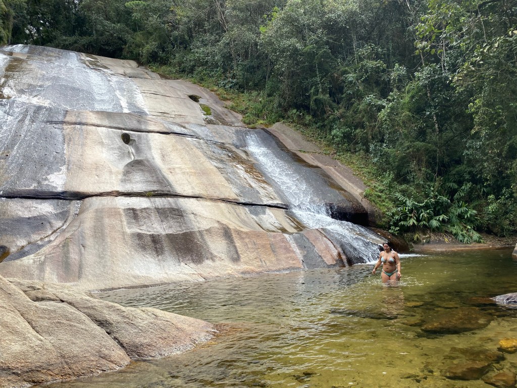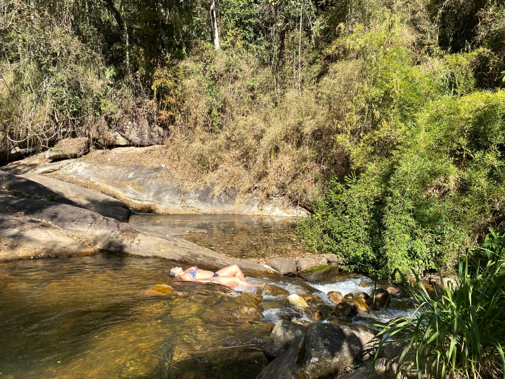 Como o nome diz, as pedras da cachoeira formam um escorregador natural e ficamos lá escorregando e curtindo – foi o dia mais quente da viagem. Aproveitamos para explorar também e subimos uma parte da cachoeira aonde tem várias “piscininhas” naturais no caminho, vale muito a pena.