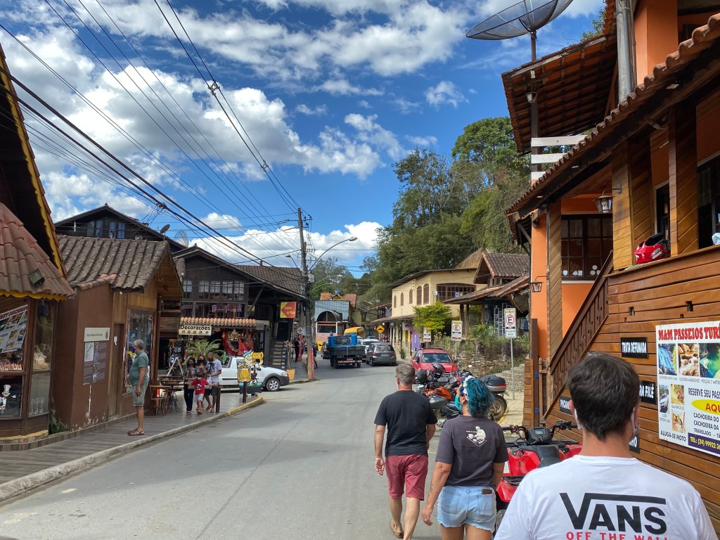 De manhã passamos no centrinho de Mauá para uma fotinho com a Igreja de São Sebastião e fomos até Maromba na Cachoeira do Escorrega. Antigamente era bem mais raiz, hoje já ficou popular e tem até estacionamento (R$15 por carro), bar, restaurante e lojinhas por lá. Lá pertinho fica também a Cachoeira Véu da Noiva – uma das mais famosas da região junto com a do Escorrega – mas infelizmente estava fechada. E tem também o Poção.