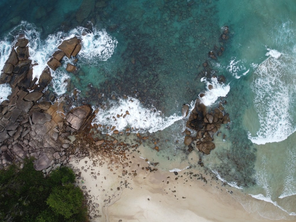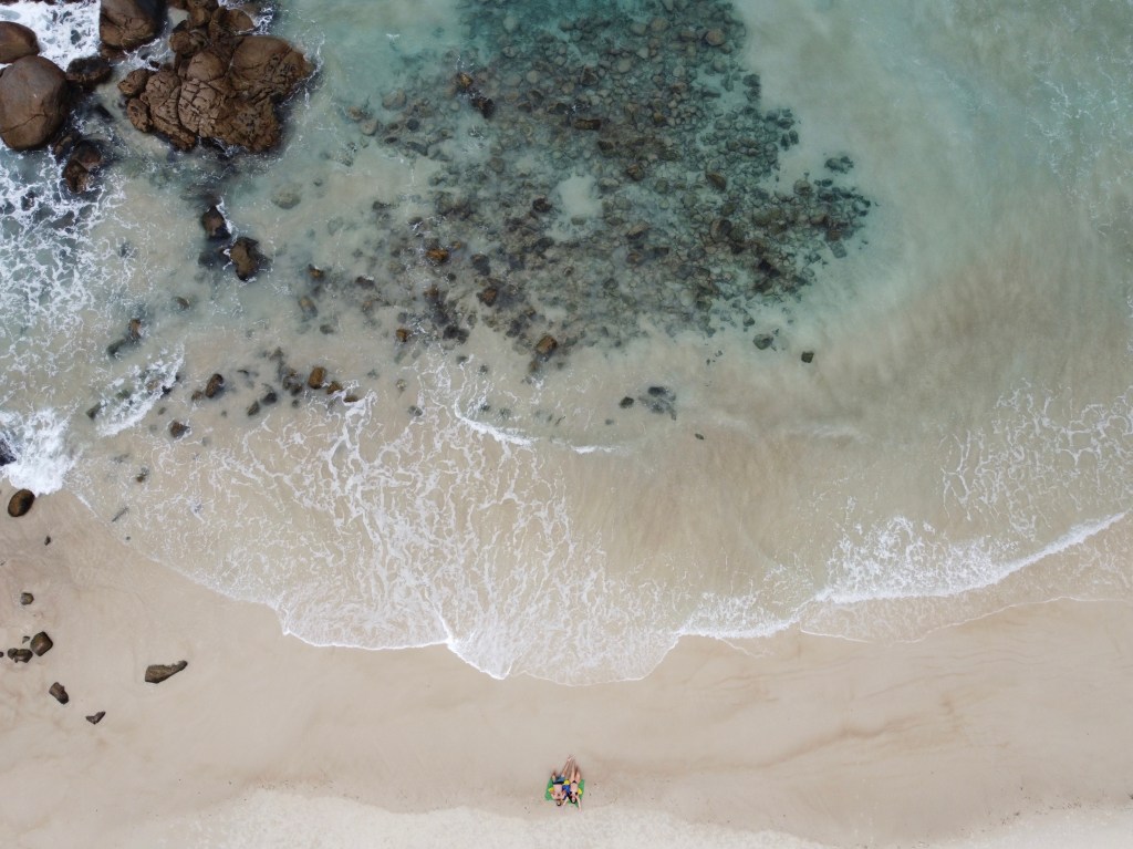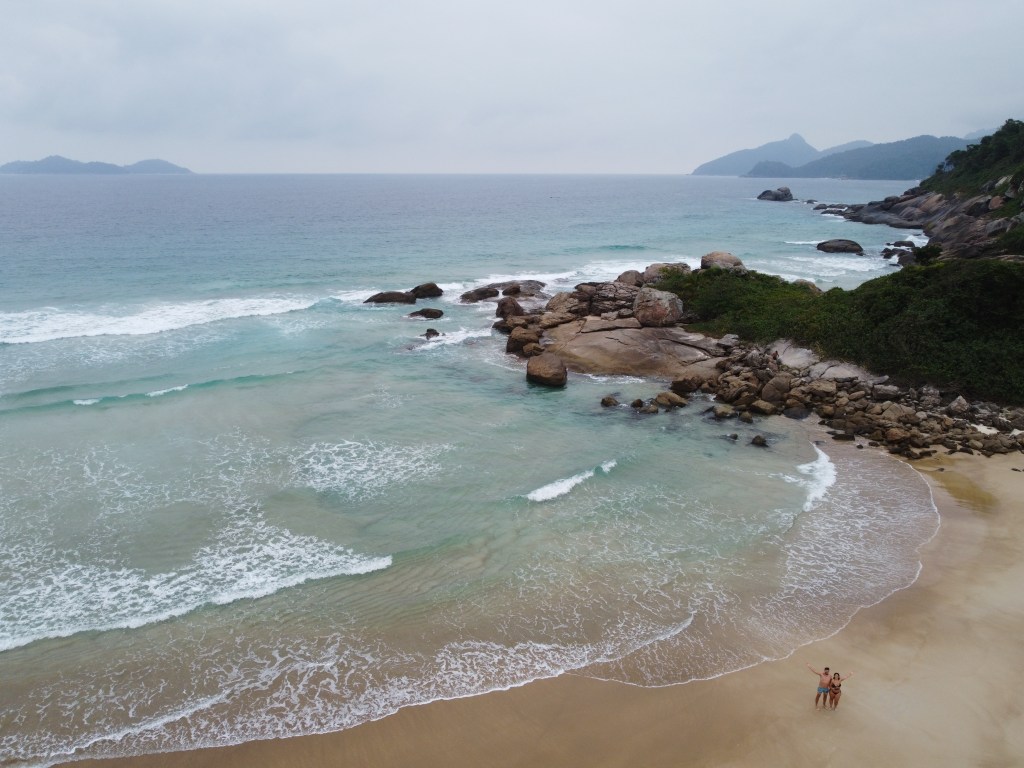 Seguimos para Praia de Parnaioca – essa já bem mais extensa mas muito bonita. No canto direito tem um riozinho que estava uma delícia – super refrescante a água. Por lá também tem uma igrejinha que pode ser visitada – visitamos só com o drone rs porque queríamos curtir a praia. Nessa praia ficamos mais tempo e foi muito bom.