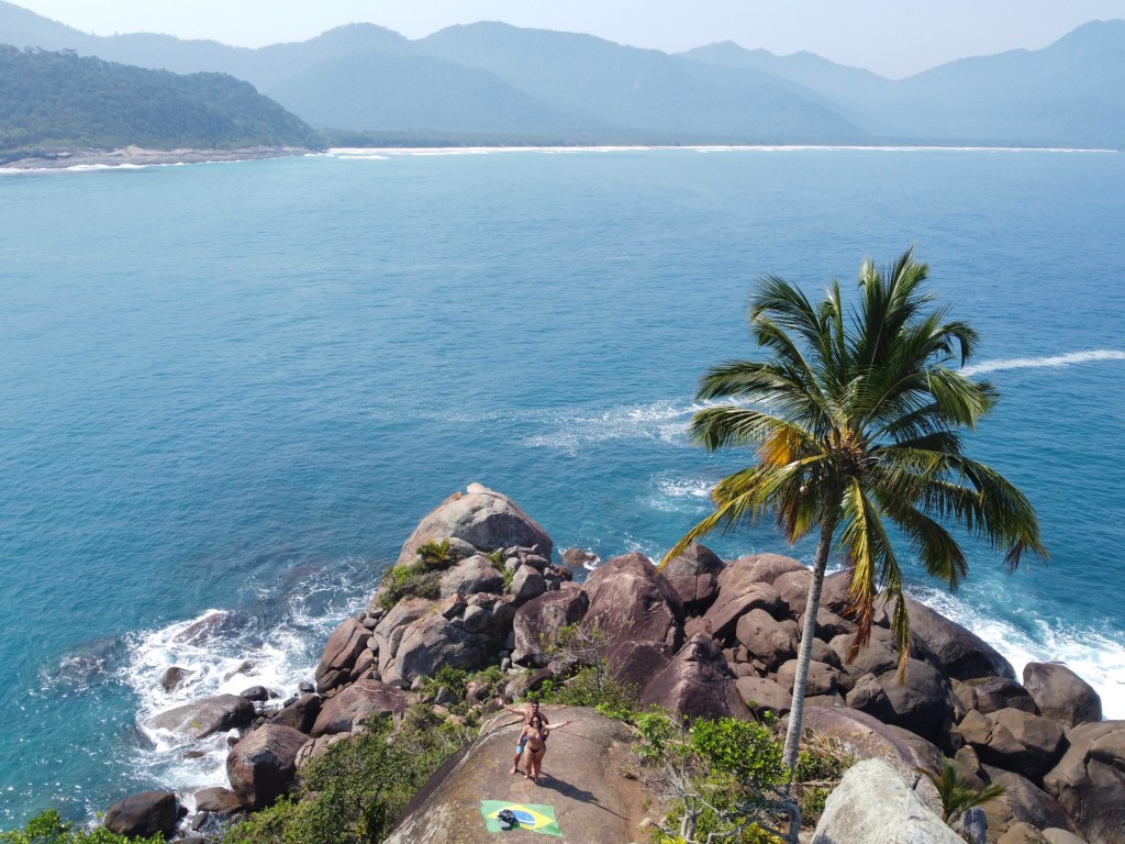 Outra coisa que eu amei lá foi subir no Mirante da Espia – uma pedra super alta que tem um coqueiro no topo e uma vista sensacional. Descendo no cais é só seguir pelas pedras a esquerda – não recomendo para quem tem medo de altura. Por último, assim como ir para Paris e não visitar a Torre Eiffel, não tinha como ir para a Praia do Aventureiro e não tirar foto no coqueiro deitado que fica na praia mesmo – cartão postal da Ilha. Mas confesso que gostei mais mesmo do coqueiro em cima da pedra hehe – achei incrível. Que praia! Que lugar!!!