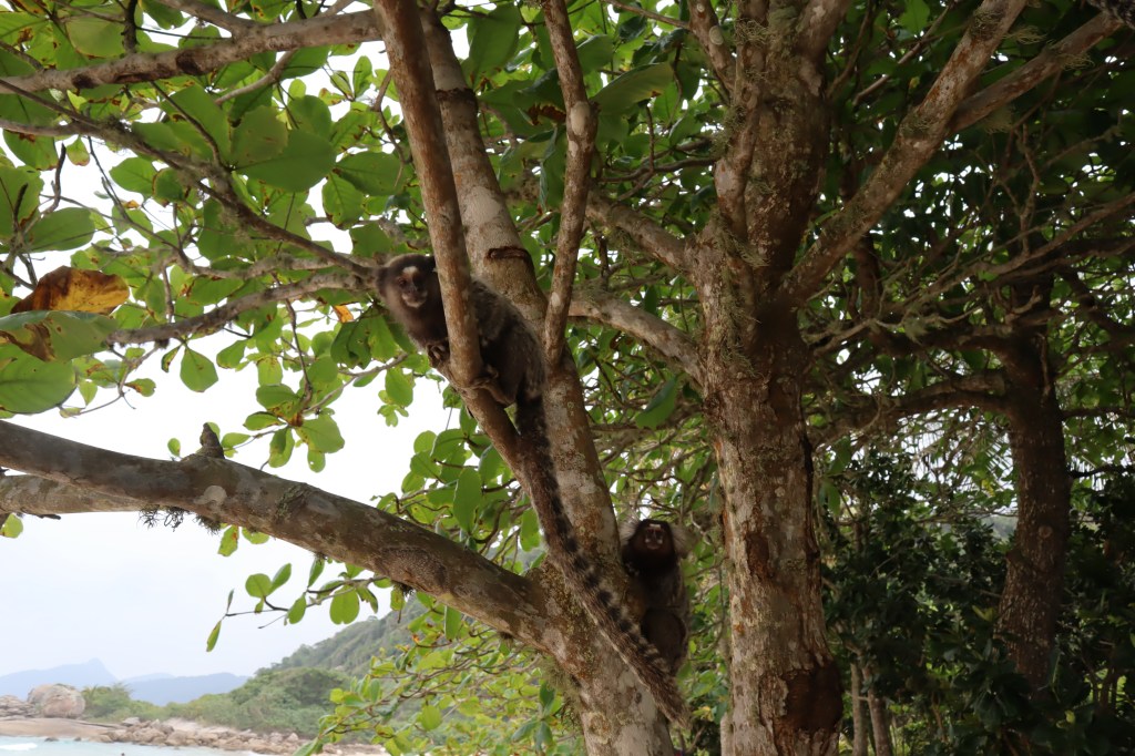 De lá voltamos até a bifurcação e mais 8 minutinhos estávamos na Lopes Mendes. Resumindo: Praia do Pouso – Praia de Santo Antônio 28min. Praia do Pouso – Lopes Mendes: 18min. Praia de Santo Antônio – Lopes Mendes: 26min. Isso em uma trilha tranquila com uma parte ou outra mais pesada mas num passo de boa. Recomendo muito fazer as duas praias num dia. Lopes Mendes é uma praia enoooooorme e ficamos no cantinho direito. Já é minha terceira vez nessa praia, na primeira foi quando mais me impressionou – hoje prefiro prainhas menores como a Praia de Santo Antônio – mas ela é muito linda sim. Ah, vimos micos na árvore enquanto estávamos na praia e muitos mais na hora de voltar na trilha. Muito legal!!