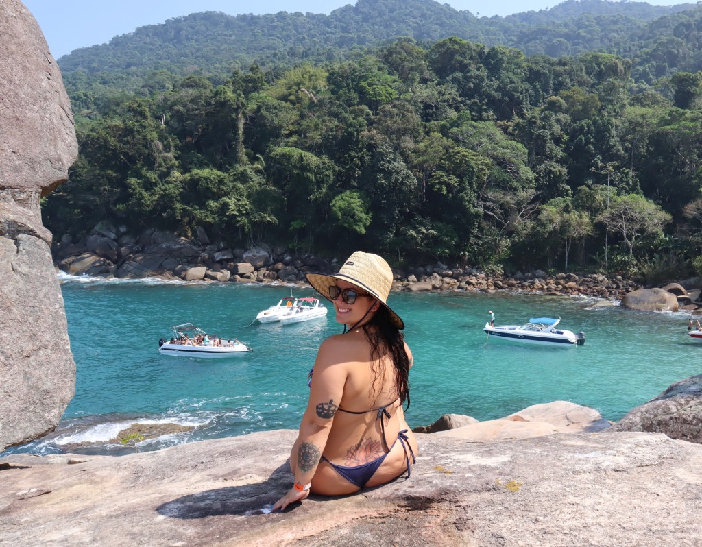 Eu amo a Ilha Grande e voltaria com certeza pois tem muitas praias e lugares para conhecer. Como comentei, já fui para lá três vezes incluindo essa e dessa vez quis conhecer lugares que não tinha ido. Para uma primeira visita a Ilha ou também se o mar não estiver muito bom, vale muito a pena o passeio Meia Volta (já fiz duas vezes) que vai para Lagoa Azul, Lagoa Verde, Saco do Céu, Praia do Amor e Praia da Feiticeira (geralmente uns R$150-180). Lopes Mendes e Praia de Santo Antônio é a opção mais econômica de passeio como mencionei lá em cima (R$40 ida e volta). Além disso tem diversas trilhas – algumas mais fáceis e outras de dias depende do seu perfil. Uma que recomendo para quem é nível intermediário é a da Cachoeira da Feiticeira. Outro passeio que fiz e foi emocionante foi visitar a Gruta do Acaiá . Pra ir lá, depende muito também de como está o mar pois a gruta é de difícil acesso mas é linda e você dá um breve mergulho numa parte fluorescente que é causada por um feixe de luz no mar na fenda – chorei de emoção quando fui. Enfim, Ilha Grande tem opção para todos os gostos – e bolsos.