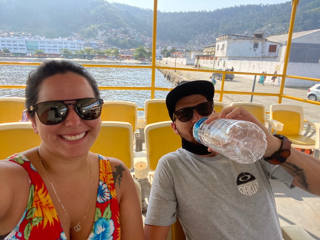 Acordamos e já arrumamos as coisas para ir embora pois nossa barca de volta (R$17.30 por pessoa) para Angra saía as 10 da manhã. Tomamos um açaí (R$20.48 os dois) de café da manhã ali em frente ao cais enquanto esperávamos.