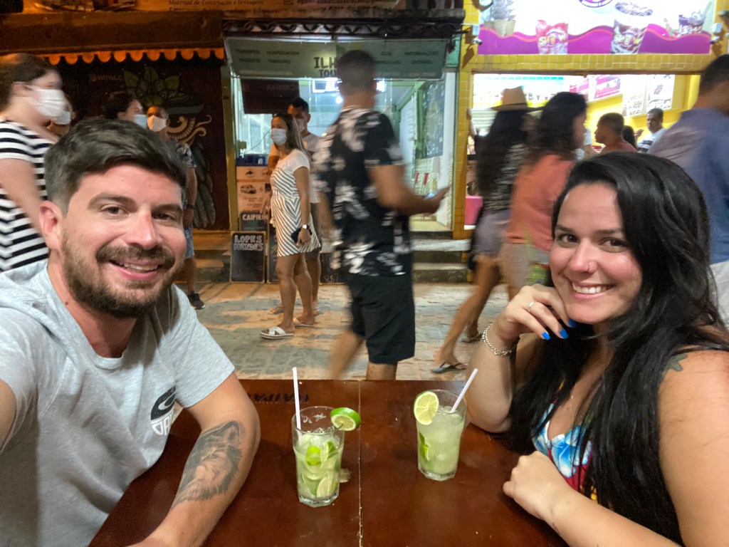 Chegando na Vila, subimos para a pousada, banho e descemos para curtir a vibe da Vila num sábado a noite. Estava bem cheinha, feira do hippie rolando, barzinhos e restaurantes cheios. Comi um bolo maravilhosoooo na barraquinha da Formigueiro Doceria Artesanal (R$10) @formigueiro.doceriaartesanal . Depois sentamos no Rei da Picanha (R$27.50) e tomamos umas caipirinha e de lá fomos comer uns petiscos no Rocko´s (R$48.40).
