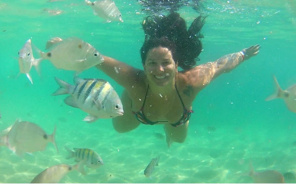 De lá seguimos para a Praia dos Meros – outra praia maravilhosa e menorzinha com o mar super verdinho. Lá é cheio de peixinhos então leve seu snorkel – ou não – porque o mar é tão cristalino que dá para vê-los da superfície hehe. Também uma praia popular e com várias lanchas.