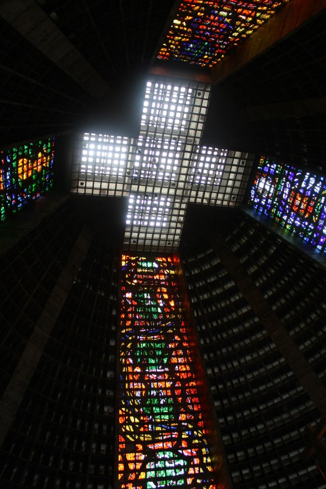 Seguimos sentido Cinelândia passando pelo Santuário e Mosteiro de Santo Antônio e pelo Teatro Municipal da cidade. Ali do lado tem também a Catedral Metropolitana de São Sebastião – um conceito diferente e moderno de igreja.