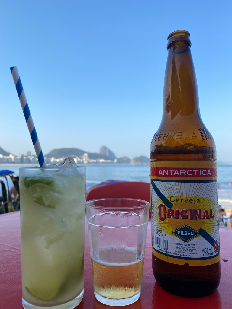 Como já era fim do dia, pegamos o metrô no Flamengo (R$5 por pessoa) até a estação Cantagalo e andamos até Copacabana que estava lotada. Sentamos no Botequim Carioca (R$23) para tomar um drink e curtir. De lá seguimos até o Arpoador para ver o pôr do sol – bem cheio também mas valeu a pena, a vista é linda.