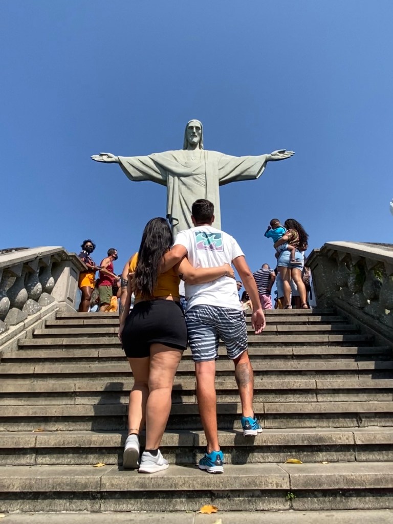 Acordamos cedo para ir no Corcovado – já tinha comprado online os tickets (R$67.50 cada) para as 9:20. Pegamos um Uber (R$8) até a Estação Trem do Corcovado pois de lá subimos com o trenzinho que está incluso no valor do ticket. Vale muito mais a pena do que subir de carro até o topo e pagar estacionamento que gira em torno de R$40-50 quando tem vaga.