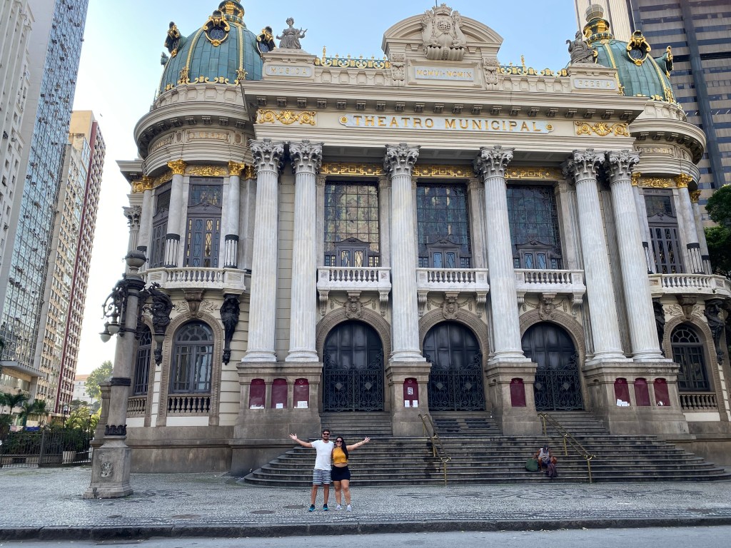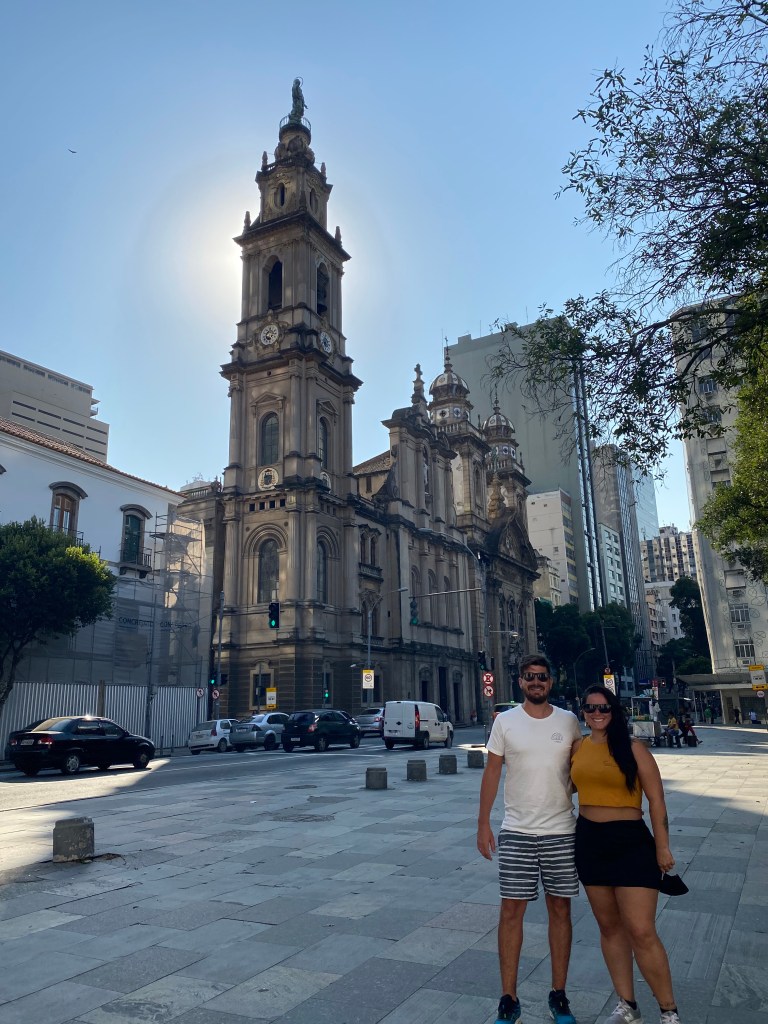 Andamos até o Centro passando pela Igreja da Candelária – que infelizmente ficou conhecida por conta da chacina que aconteceu em 1993. Duas quadras dali fica a Pira Olímpica. Continuamos até o Largo da Carioca aonde fica o famoso Arco do Teles e também a Igreja de Nossa Senhora do Carmo (só vimos por fora mas por fotos o interior é lindo). Passamos pela ALERJ e pela Igreja de São José também. O centro é muito histórico e toda essa arquitetura lembra muito as ruas da Europa.
