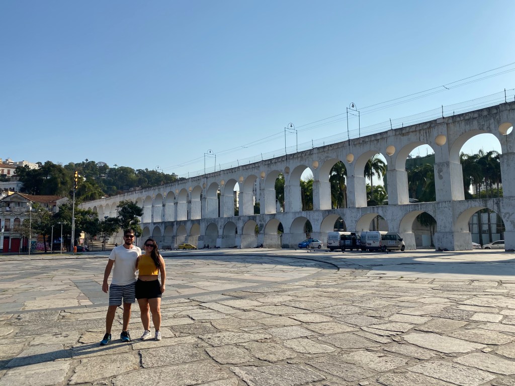 Chegamos finalmente na Lapa – que ainda não era nosso destino mas estava perto. Vimos os Arcos da Lapa e fomos subir os 250 degraus da Escadaria Sélaron que para nossa sorte estava vazia. Antes paramos no Ponto de Encontro Ximeninho (R$18) para refrescar – minha amiga e meu namorado com cerveja e eu com muita água. Estava um calor absurdo e um sol de rachar.