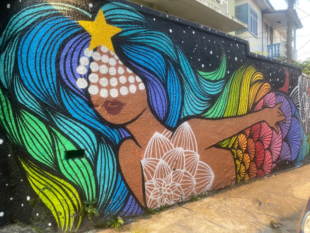 Andamos ali pelo bairro, super bonitinho, passamos pelo Largo do Curvelo e adorei esse grafite da @rafamon que vimos no caminho. A parada final foi no Portella (R$33) para mais drinks e o merecido descanso final depois de andar 10km pelo Rio de Janeiro. Valeu pelo rolê Bia!!!! 🙂