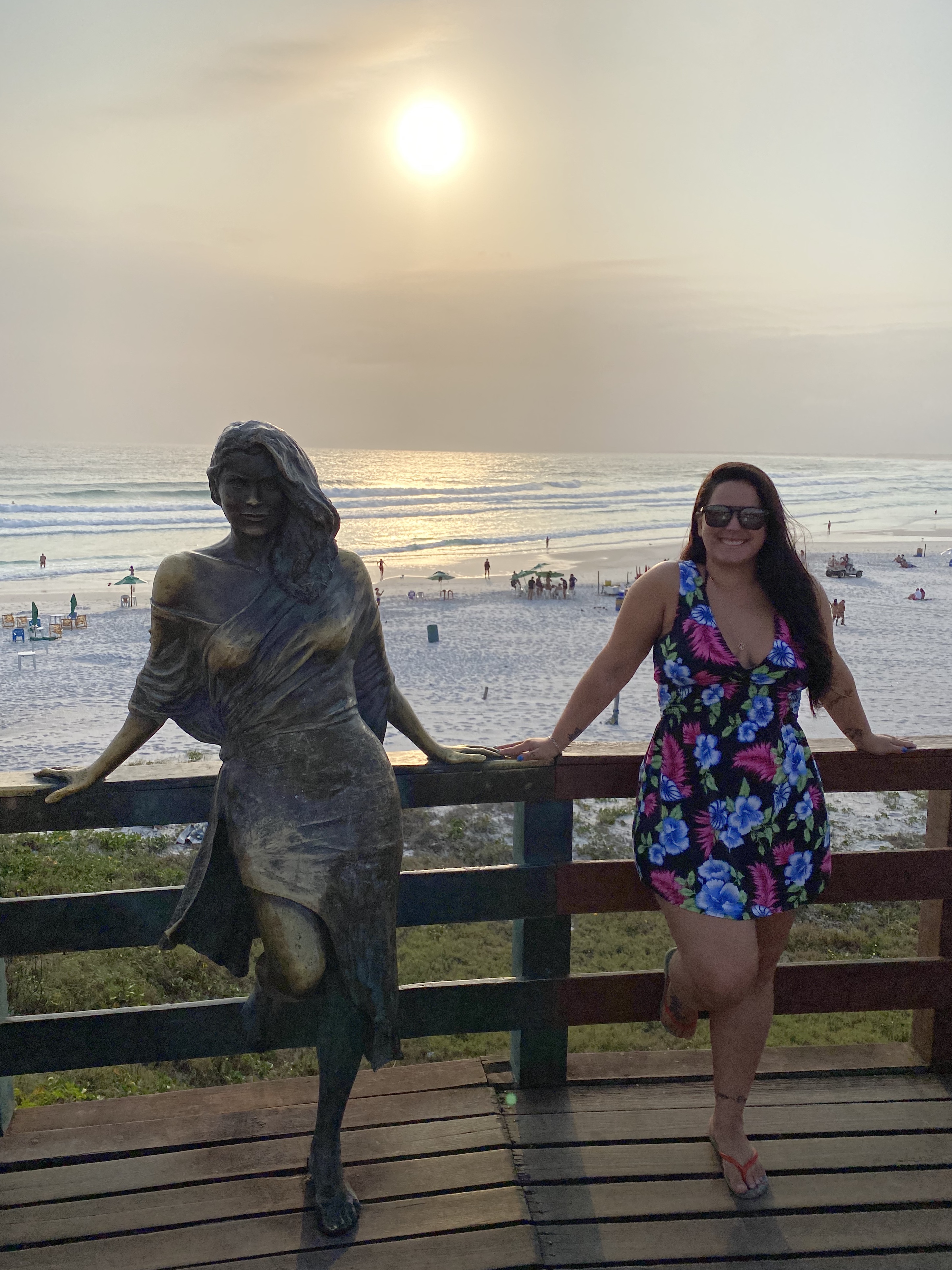 Deixamos o carro na pousada e fomos almoçar no Restaurante Atalaia, comida por quilo R$52 nós dois com bebidas. De lá andamos até a Praia Grande para ver o pôr do sol e como estava ventando, o mar estava com umas ondas até. Sentamos no Quiosque Azaração (R$20) para tomar um drink. Aproveitei para tirar uma foto com a “Flávia Alessandra” na Orla que leva o nome da atriz. Na volta pra pousada, passamos no Supermercado Princesa (R$77) para comprinhas pois decidimos cozinhar para economizar. Banho e cama.